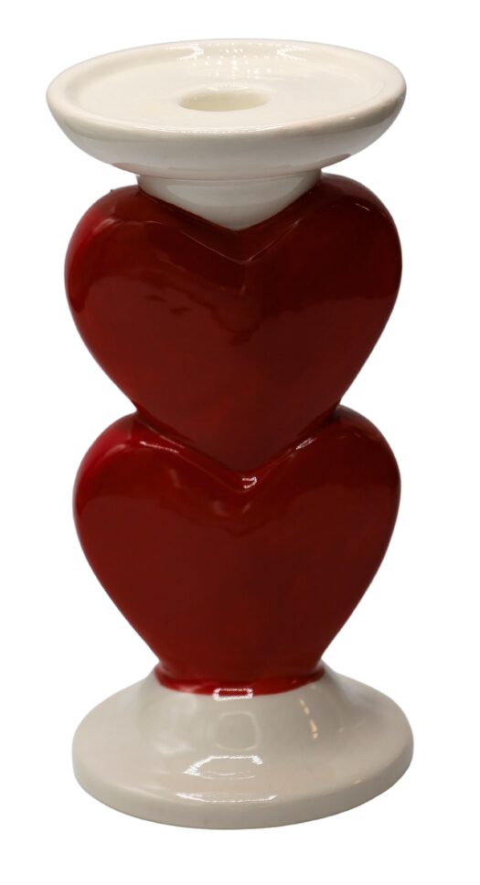 Świecznik HEART to średniej wielkości ceramiczna dekoracja z dwoma czerwonymi serduszkami — idealna na romantyczne wieczory, walentynkowe aranżacje lub jako stylowy akcent w codziennym wnętrzu.