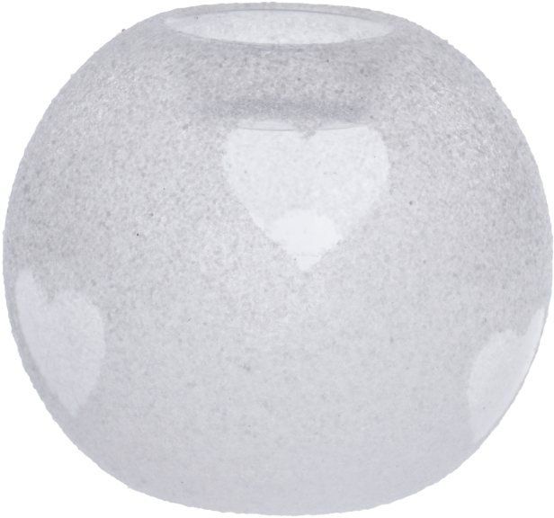 Świecznik szklany kulka w serca mały LUNORA to dekoracyjny akcent, który łączy funkcjonalność z subtelną estetyką. Wykonany z matowego, mlecznego szkła o kulistym kształcie, rozprasza światło w miękki, przytulny sposób. Na jego powierzchni, dzięki grze refleksów, pojawiają się delikatne kształty serc — romantyczne, ulotne, pełne wdzięku.