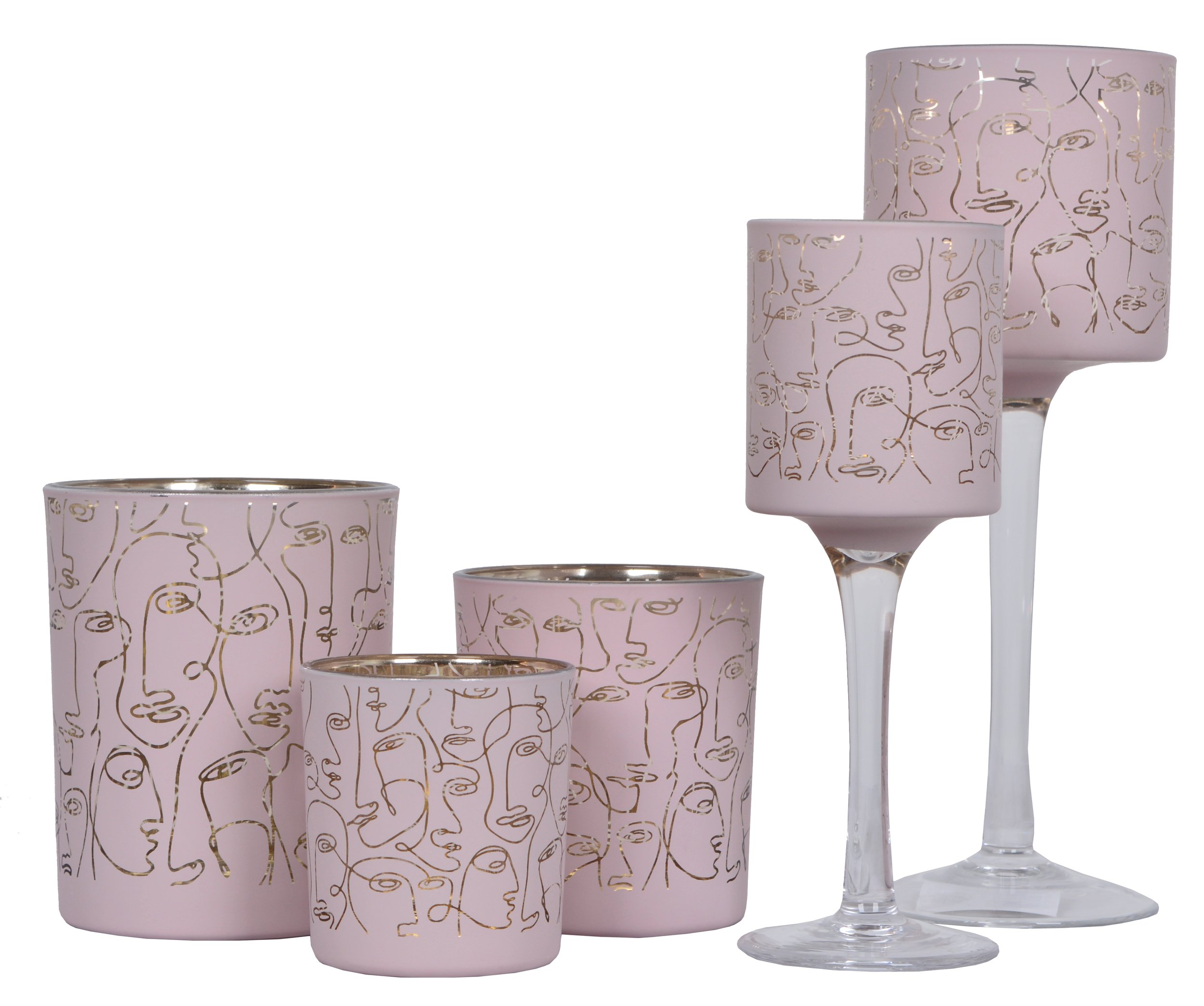 Jeśli szukasz dodatku, który wyraża więcej niż tylko estetykę — świecznik szklany różowy w twarze GLITZ jest odpowiedzią. Ten wyjątkowy element dekoracyjny zachwyca subtelnym odcieniem pudrowego różu, który w połączeniu z metalicznymi złotymi liniami tworzy artystyczną kompozycję inspirowaną współczesnym line-artem.