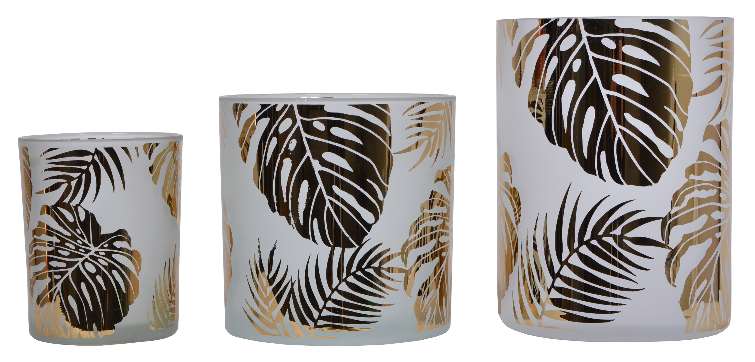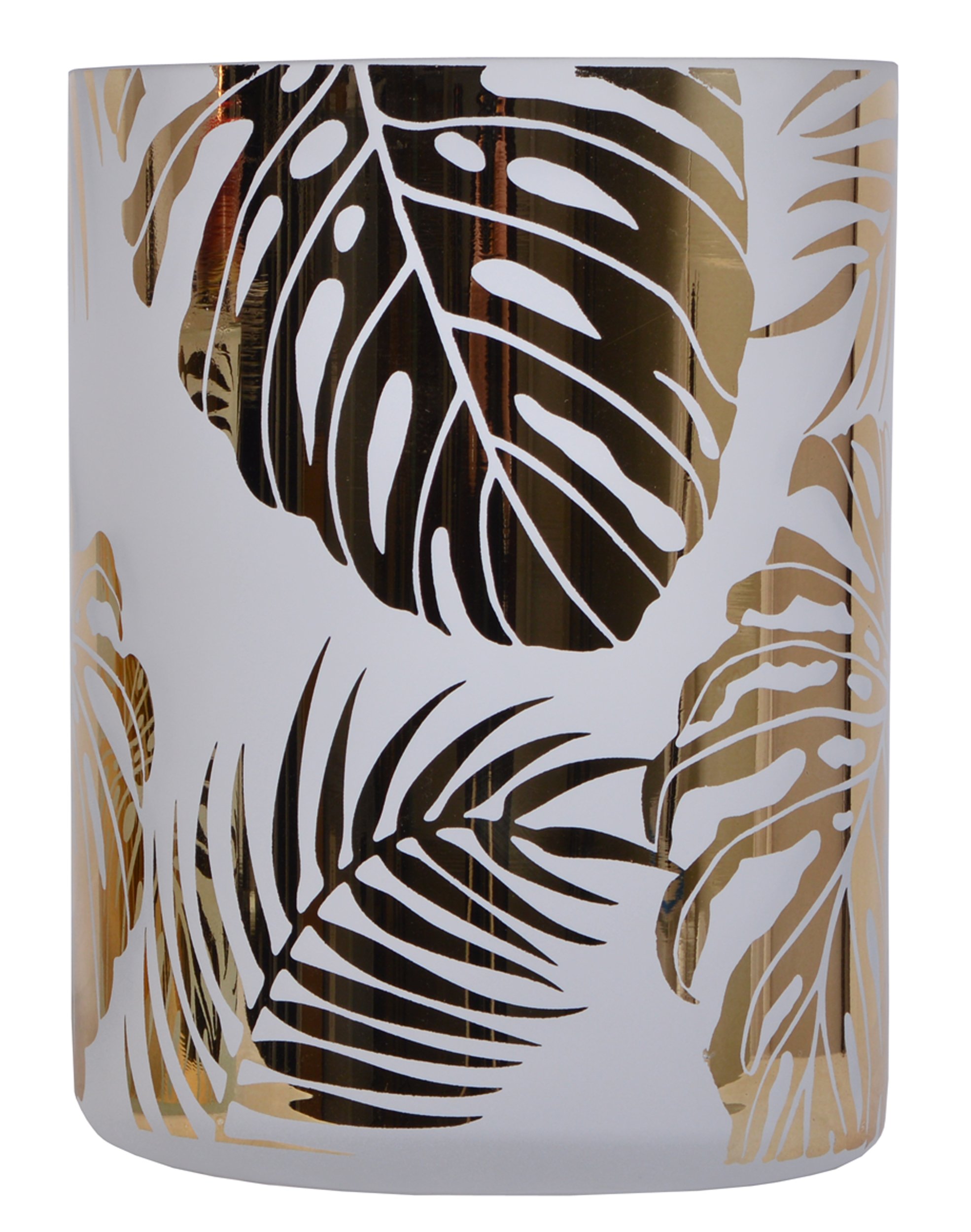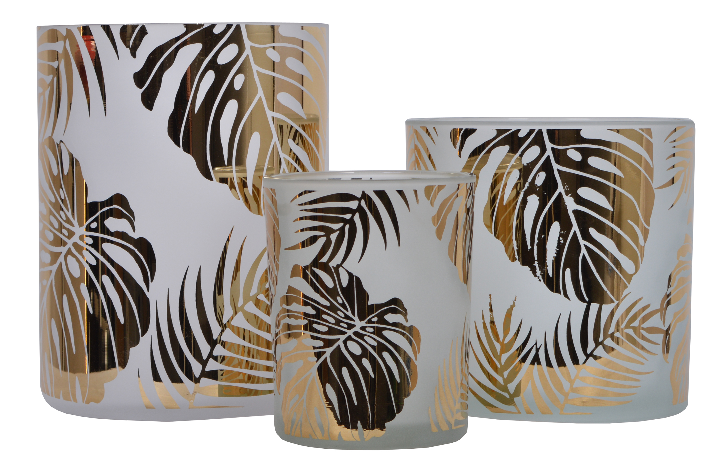 Świecznik szklany w liście złoty FLINT duży to elegancki element dekoracyjny, który doda wyjątkowego blasku każdemu wnętrzu. Wykonany z wysokiej jakości szkła, zachwyca precyzyjnie wykonanym wzorem liści, który w połączeniu z złotą kolorystyką tworzy efektowny akcent w stylu glamour. Doskonały do aranżacji zarówno nowoczesnych, jak i klasycznych przestrzeni, ten świecznik idealnie sprawdzi się na stole, komodzie czy w oknie. Dzięki odpowiednio dobranym rozmiarom, jest wystarczająco dużym akcentem, który przyciąga wzrok, a jednocześnie subtelnie podkreśla atmosferę elegancji. Zastosowanie świeczek w tym świeczniku doda ciepła i intymności każdemu spotkaniu.