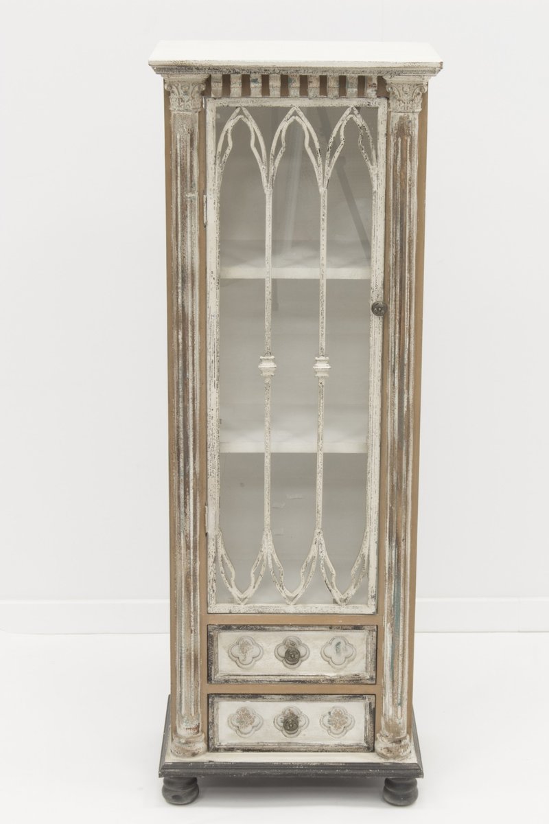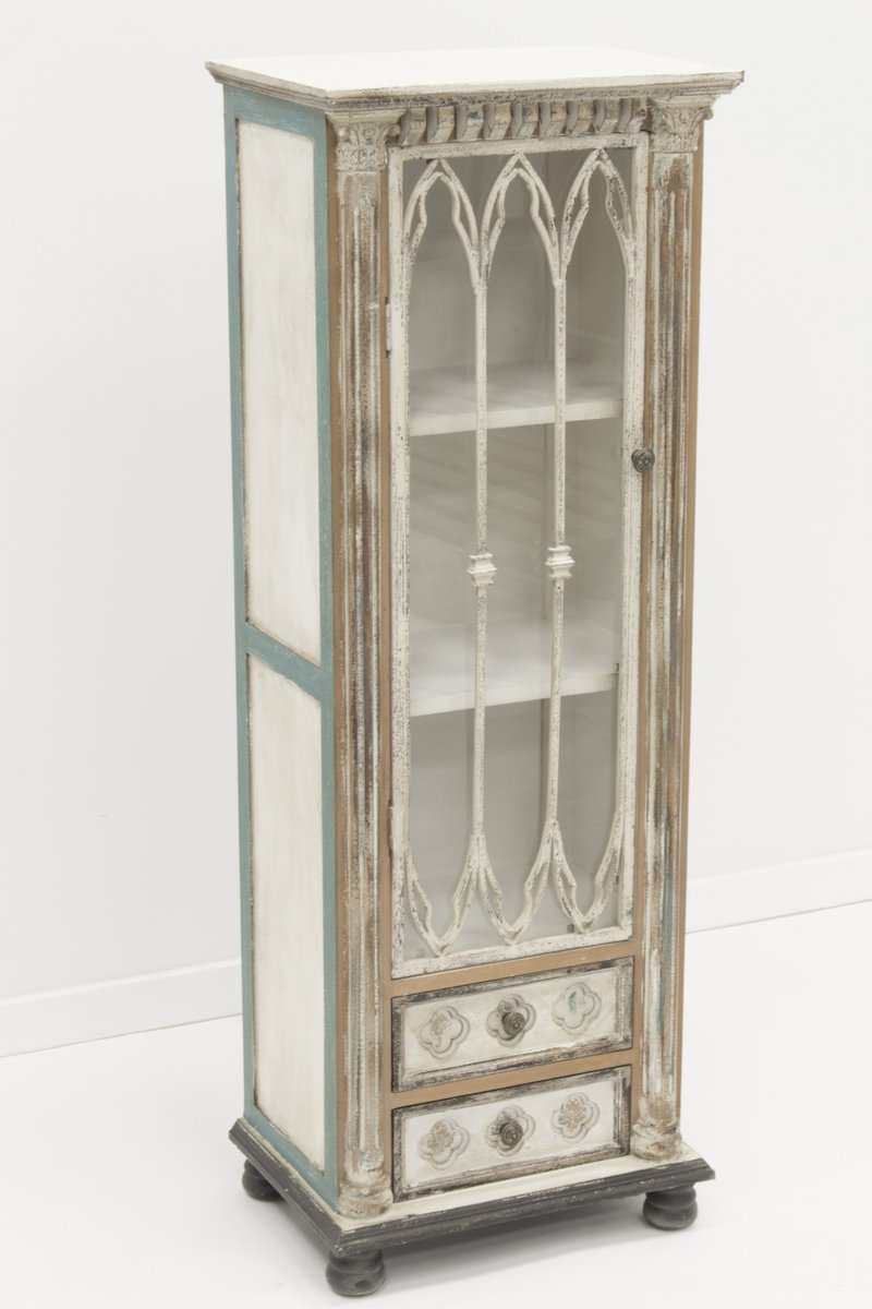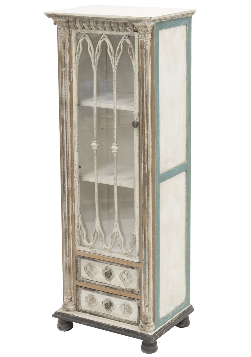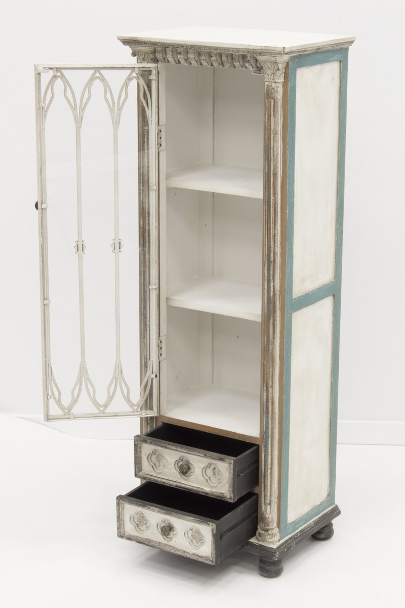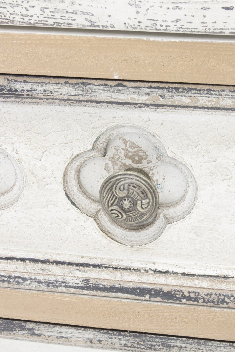 Szafka Izolda to piękna propozycja dla miłośników stylu rustykalnego. Wykonana z drewna i pomalowana na kolor kremowy, posiada postarzany i przecierany wygląd, co nadaje jej wyjątkowego charakteru. Wewnątrz znajdują się trzy półki oraz dwie szufladki, które oferują mnóstwo miejsca na przechowywanie. Dzięki otwieranym drzwiczkom można wyeksponować piękne ozdoby lub użyteczne przedmioty. Szafka Izolda to doskonały wybór dla osób, które cenią sobie funkcjonalność i estetykę w jednym.