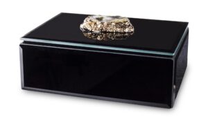 Wykonana z najwyższej jakości materiałów, szkatułka prezentuje się niezwykle stylowo. Delikatne zdobienia nadają jej wyjątkowy charakter, podkreślając jednocześnie wartość przechowywanych w niej przedmiotów. Uniwersalna forma pozwala szkatułce doskonale komponować się z różnymi stylami aranżacyjnymi, sprawiając, że może pełnić funkcję zarówno ozdobnej dekoracji na komodzie, półce czy toaletce, jak i praktycznego miejsca do przechowywania skarbów biżuteryjnych.