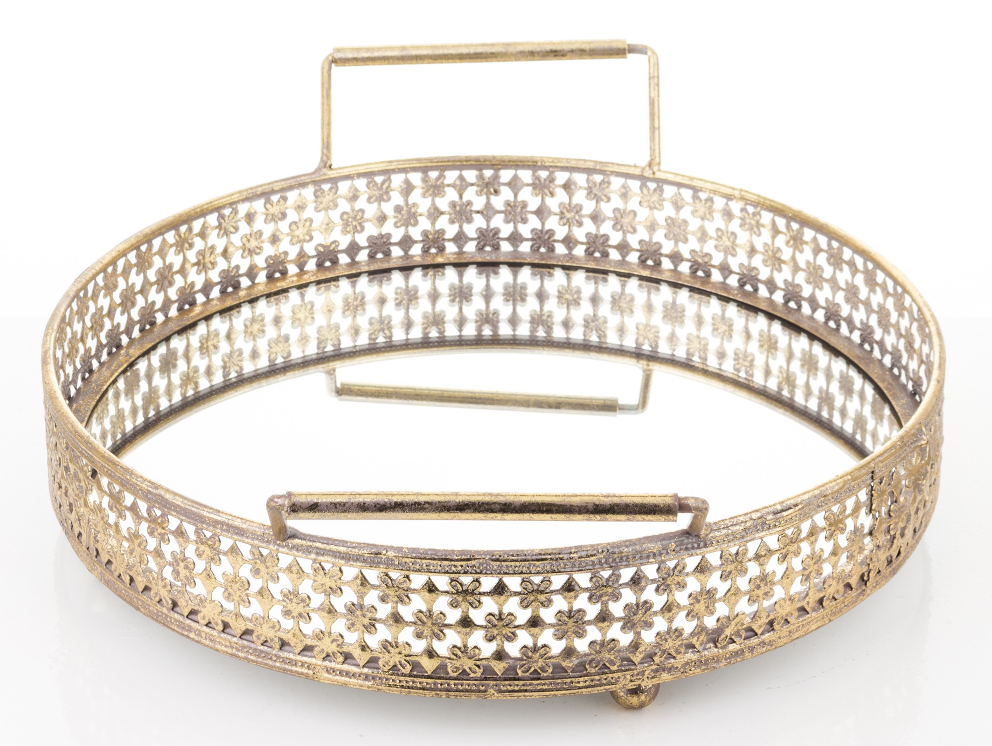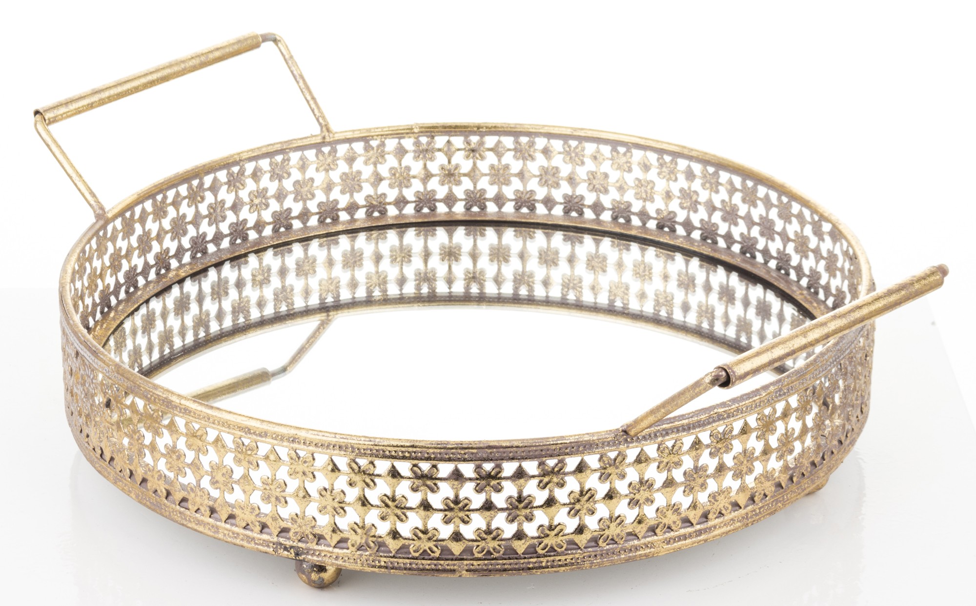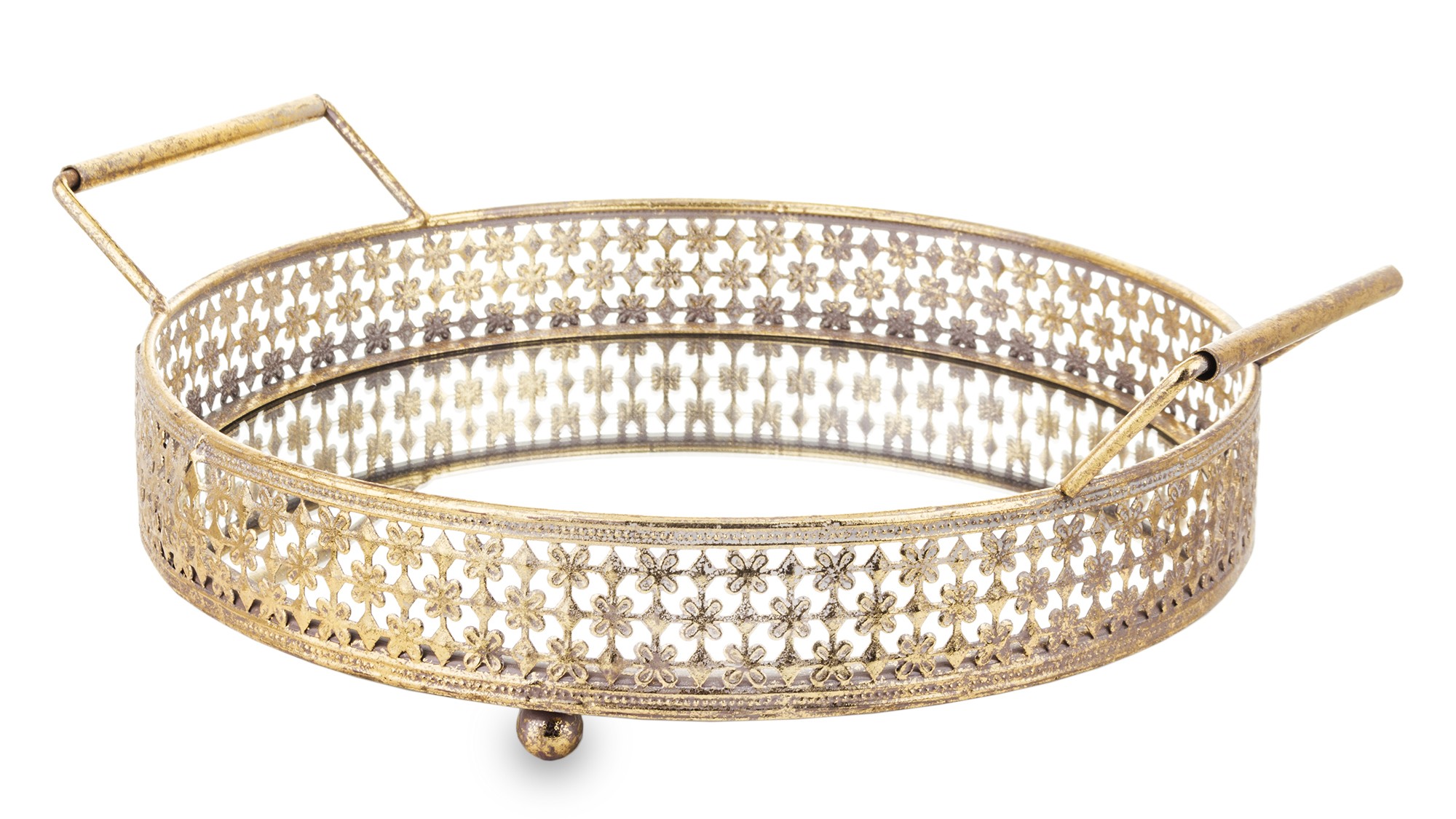 Zanurz się w świecie elegancji i funkcjonalności dzięki naszej wyjątkowej Tacy Dekoracyjnej Antico w formie okrągłej z uchwytami. Ta niezwykła taca została wykonana z solidnego metalu o subtelnym wykończeniu, a jej uchwyty dodają elementu praktycznego i stylowego.