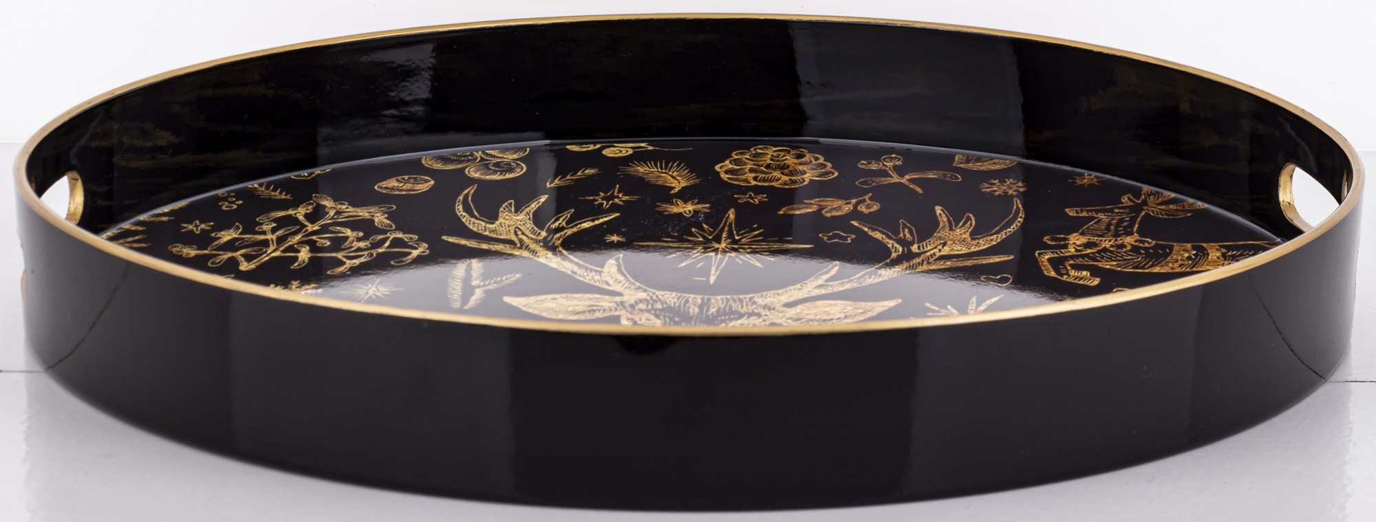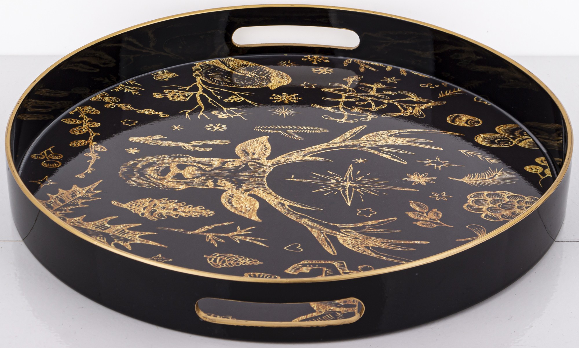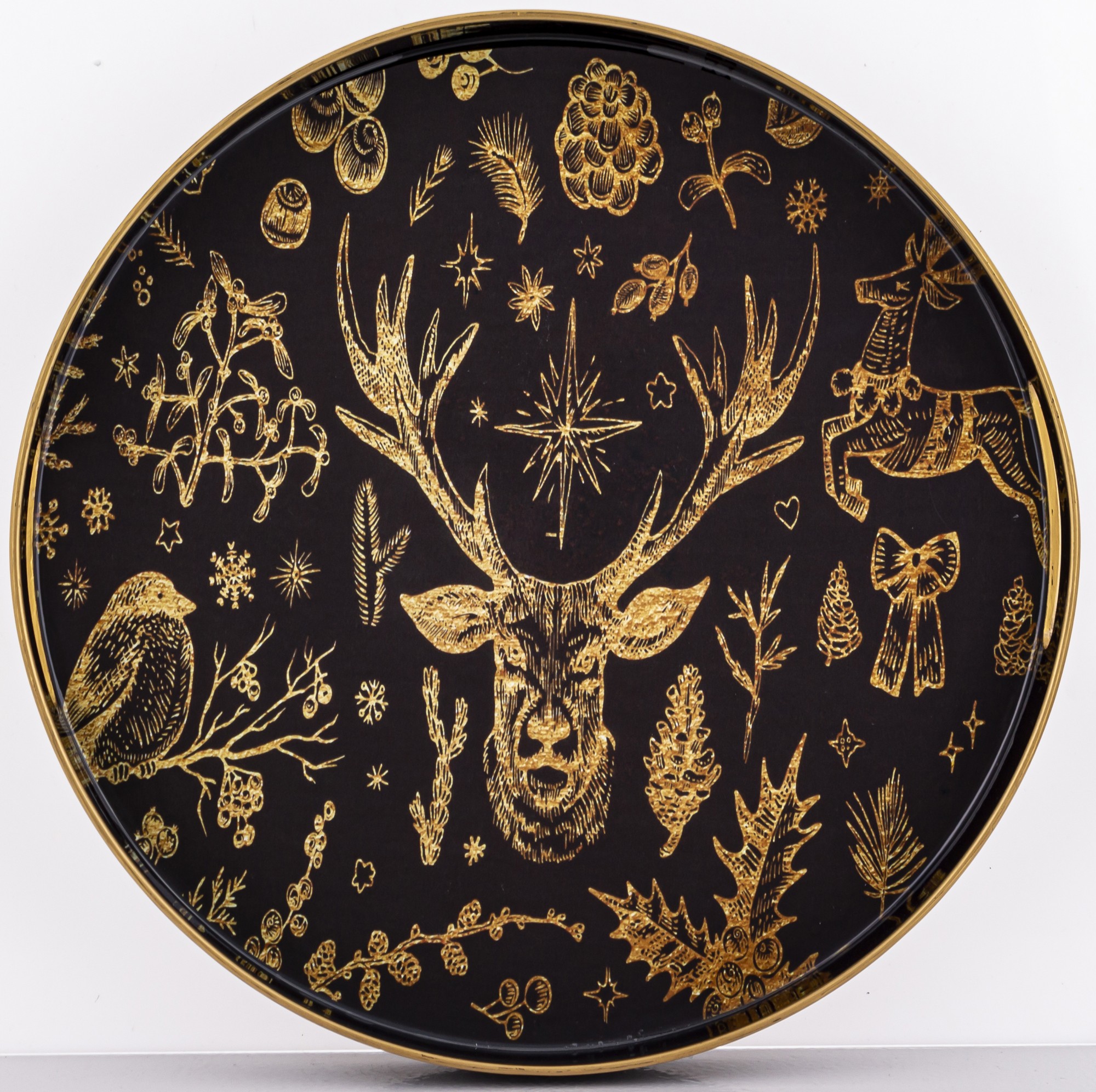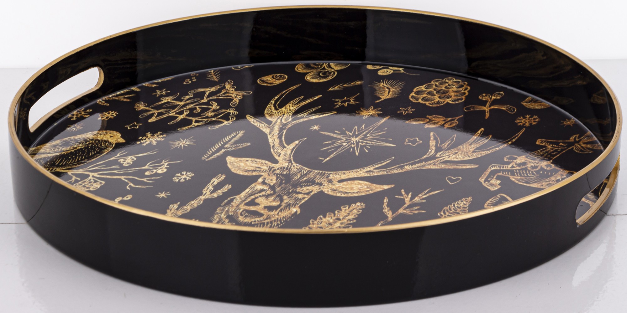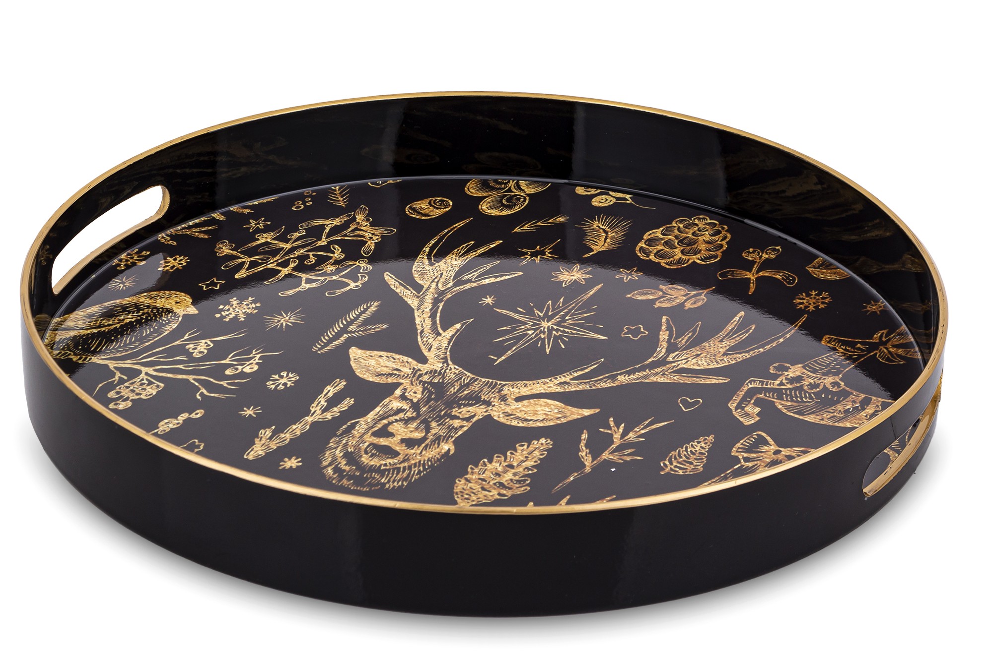 Wszechstronność tacy Cervo czarno-złotej sprawia, że staje się nieodłącznym elementem każdego wydarzenia, nadając mu niezapomnianego uroku i stylu. Doskonale sprawdzi się jako patera pod przystawki, elegancki stół z deserami, podstawka pod świeczki czy nawet jako element dekoracyjny do niewielkich aranżacji florystycznych czy ekskluzywnych perfum.