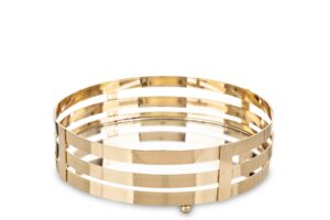Taca dekoracyjna Cerchio złota to prawdziwe dzieło sztuki, które wprowadzi do Twojego wnętrza nutę luksusu. Wykonana z metalu i szkła w formie lustra, ta niezwykła taca nie tylko stanowi idealne tło dla serwowanych potraw, ale również staje się głównym medium do tworzenia niezapomnianych aranżacji podczas każdego eleganckiego przyjęcia.
