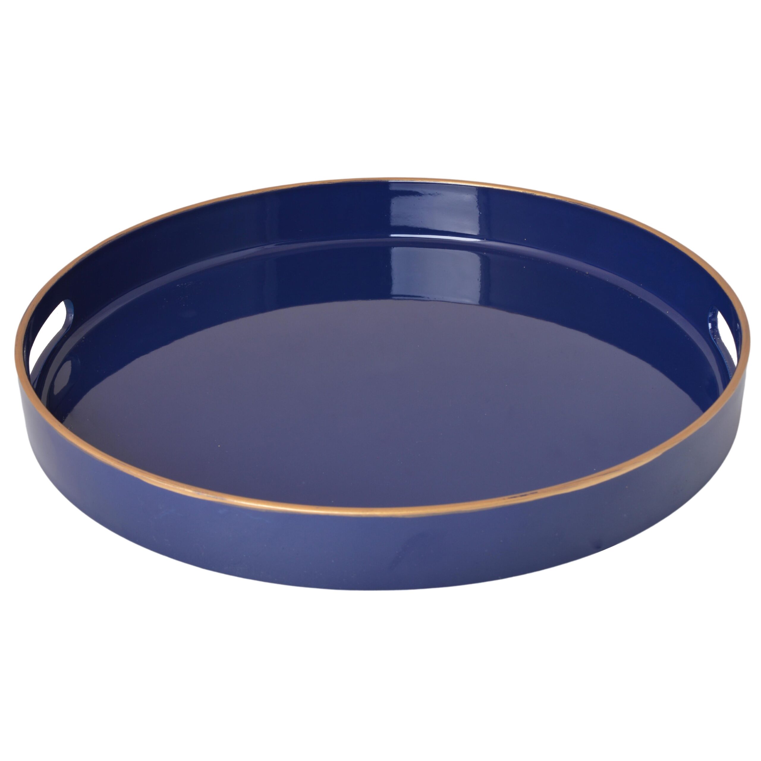 Nasza okrągła taca w kolorze granatowym z złotym rantem to wyjątkowy element dekoracyjny, który dodaje elegancji i luksusu do Twojego stołu. Ta piękna taca została wykonana z trwałego materiału o głębokim granatowym kolorze, który dodaje wnętrzu wyrafinowanego charakteru.