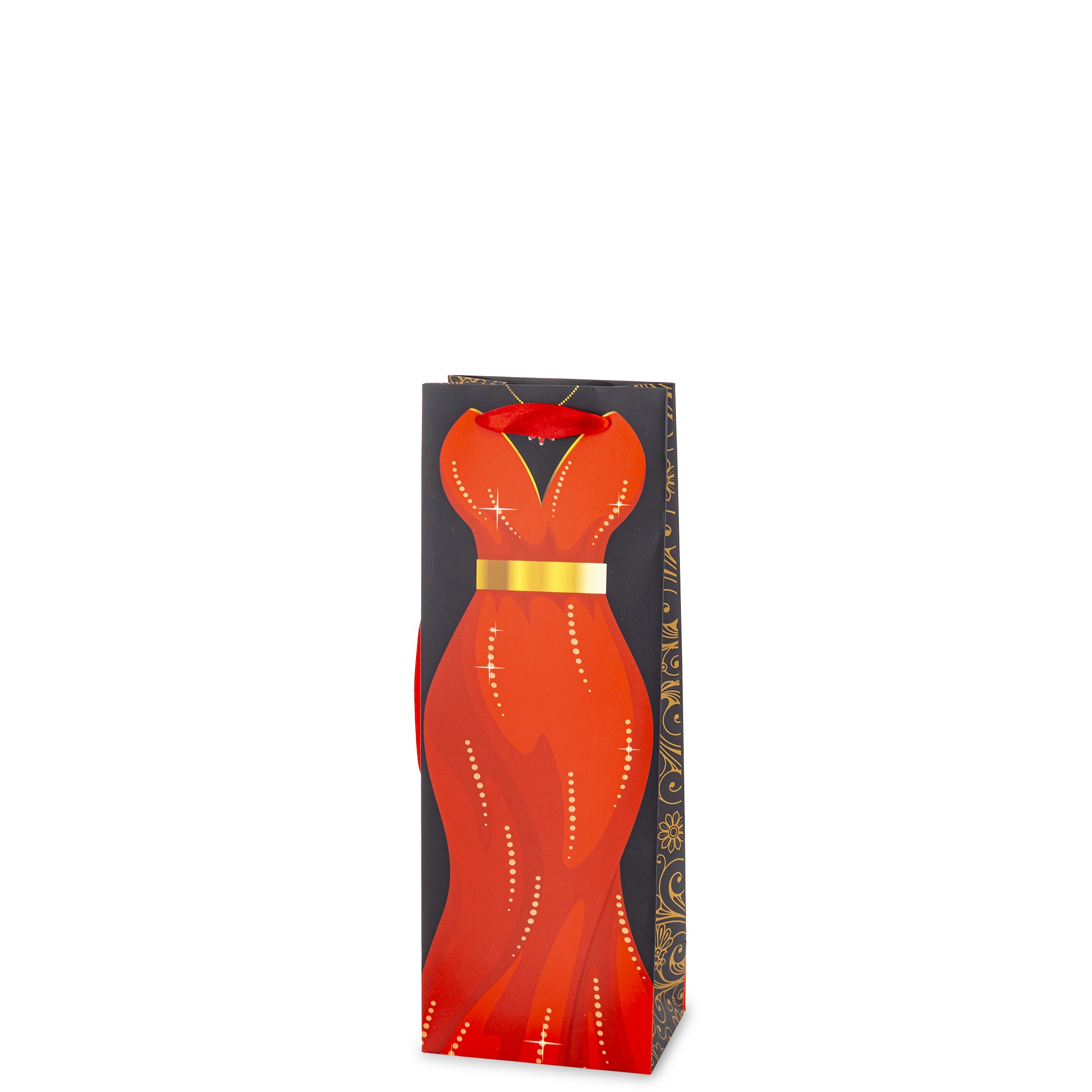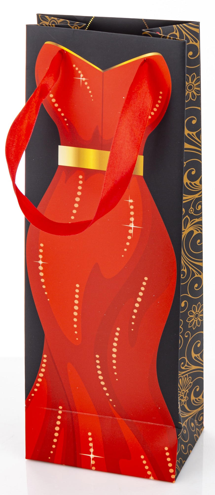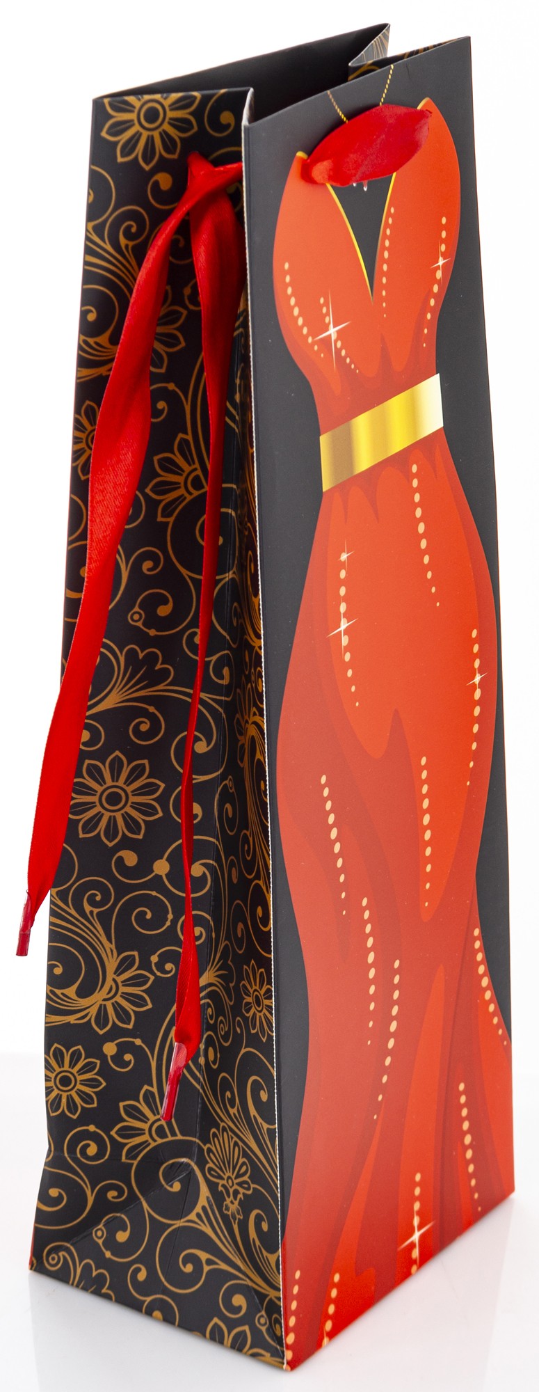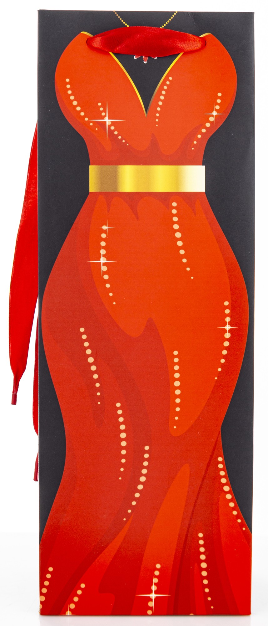 Torebka Papierowa – Prom. GLAMOUR to wyjątkowa propozycja dla osób, które chcą podkreślić elegancję i charakter wręczanego prezentu. Jej front zdobi ilustracja czerwonej sukni wieczorowej z delikatnymi złotymi akcentami, które nadają całości luksusowego, biżuteryjnego wykończenia. Czarna, kontrastowa kolorystyka tła oraz ozdobne złote ornamenty po bokach sprawiają, że torebka prezentuje się niezwykle szykownie — jak z ekskluzywnego butiku.