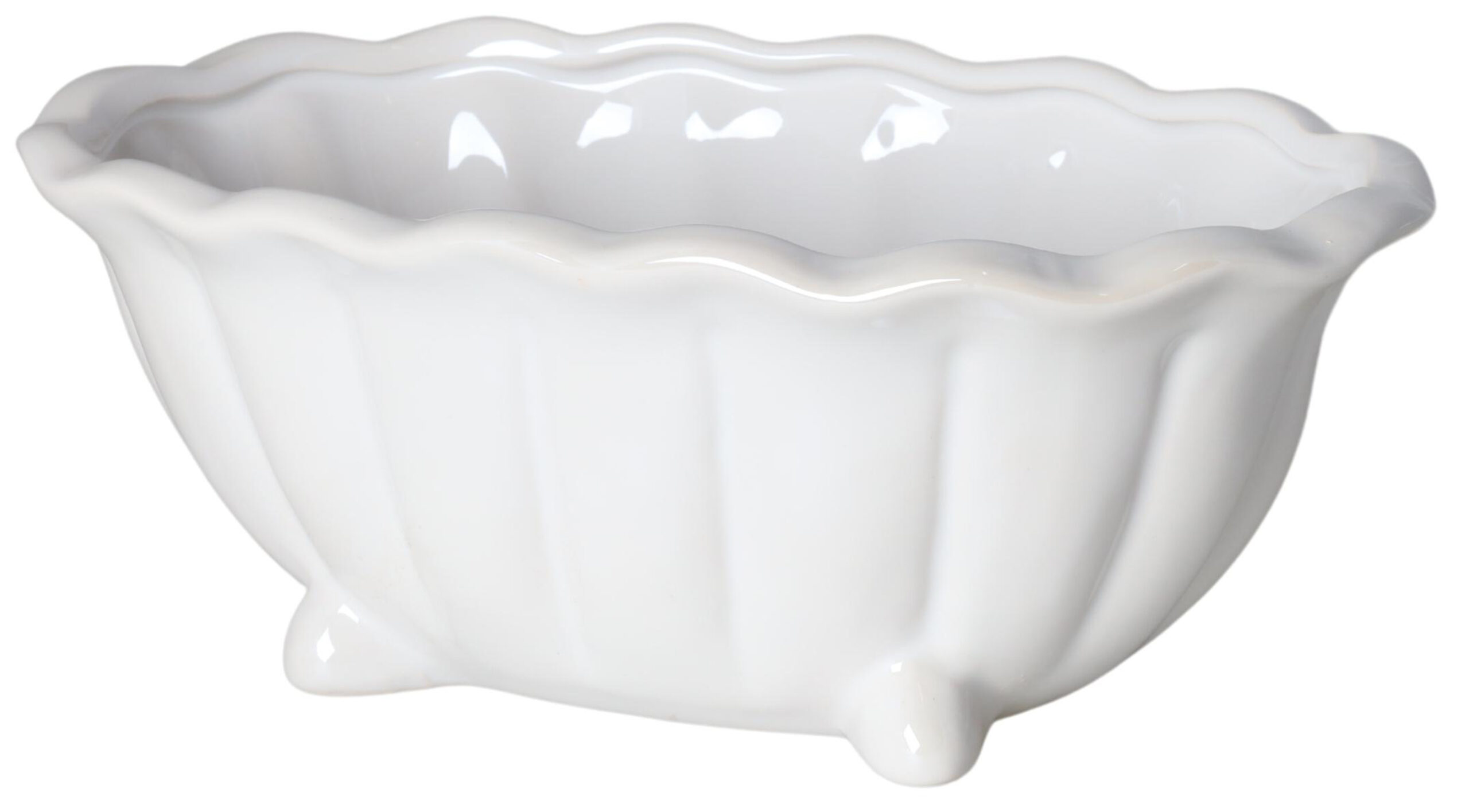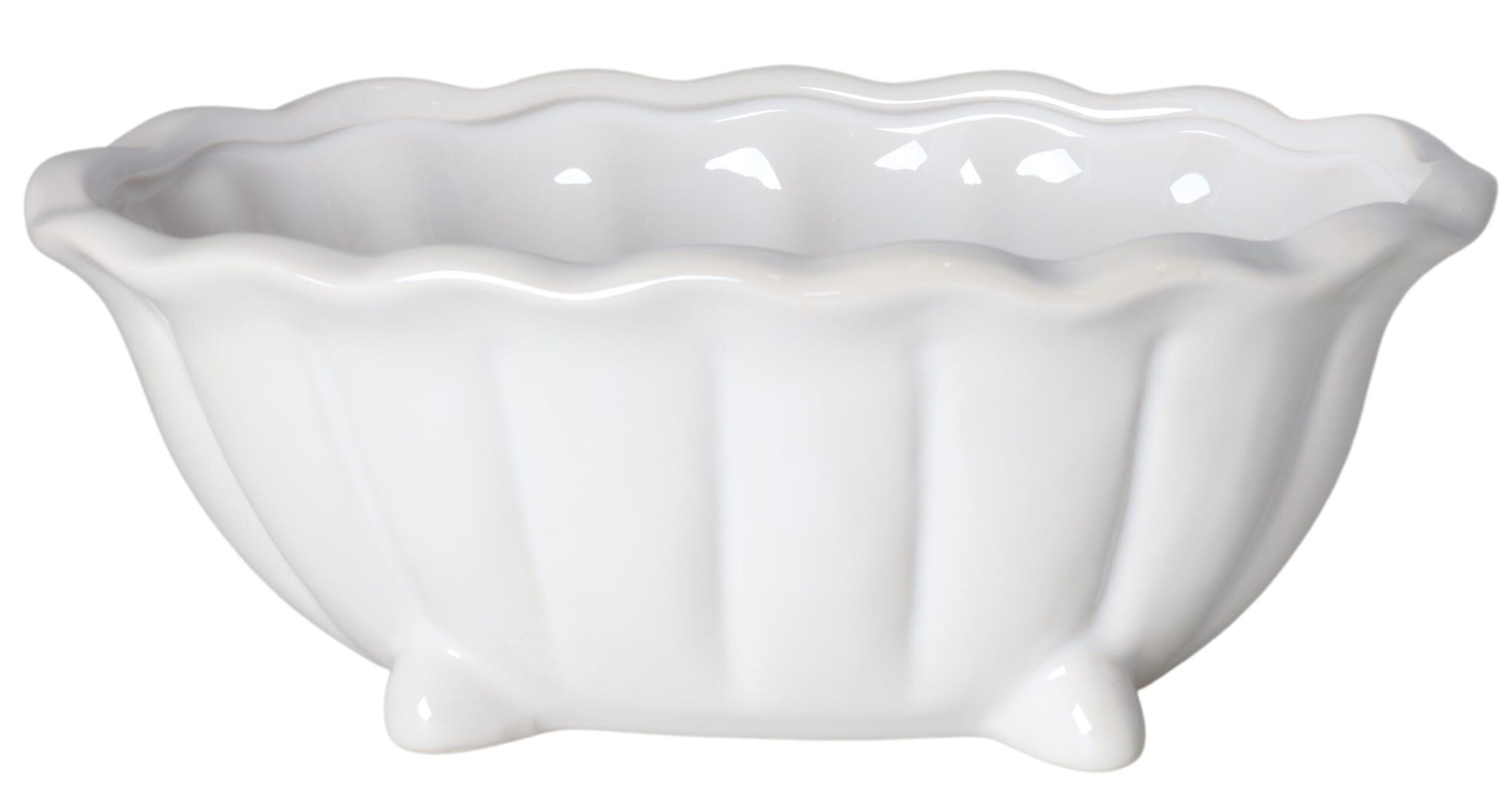 Ta dekoracyjna wanienka to połączenie klasycznej formy i nowoczesnego wykończenia. Wykonana z ceramiki o perłowym połysku, zachwyca delikatnym blaskiem i starannie wyprofilowanym kształtem. Owalna misa z falowanym rantem, żłobkowanymi bokami i czterema zaokrąglonymi nóżkami nadaje jej wyjątkowy charakter – lekko retro, ale w pełni współczesny.