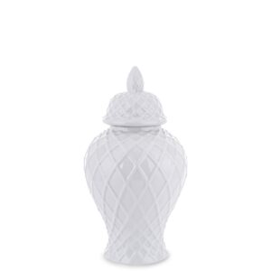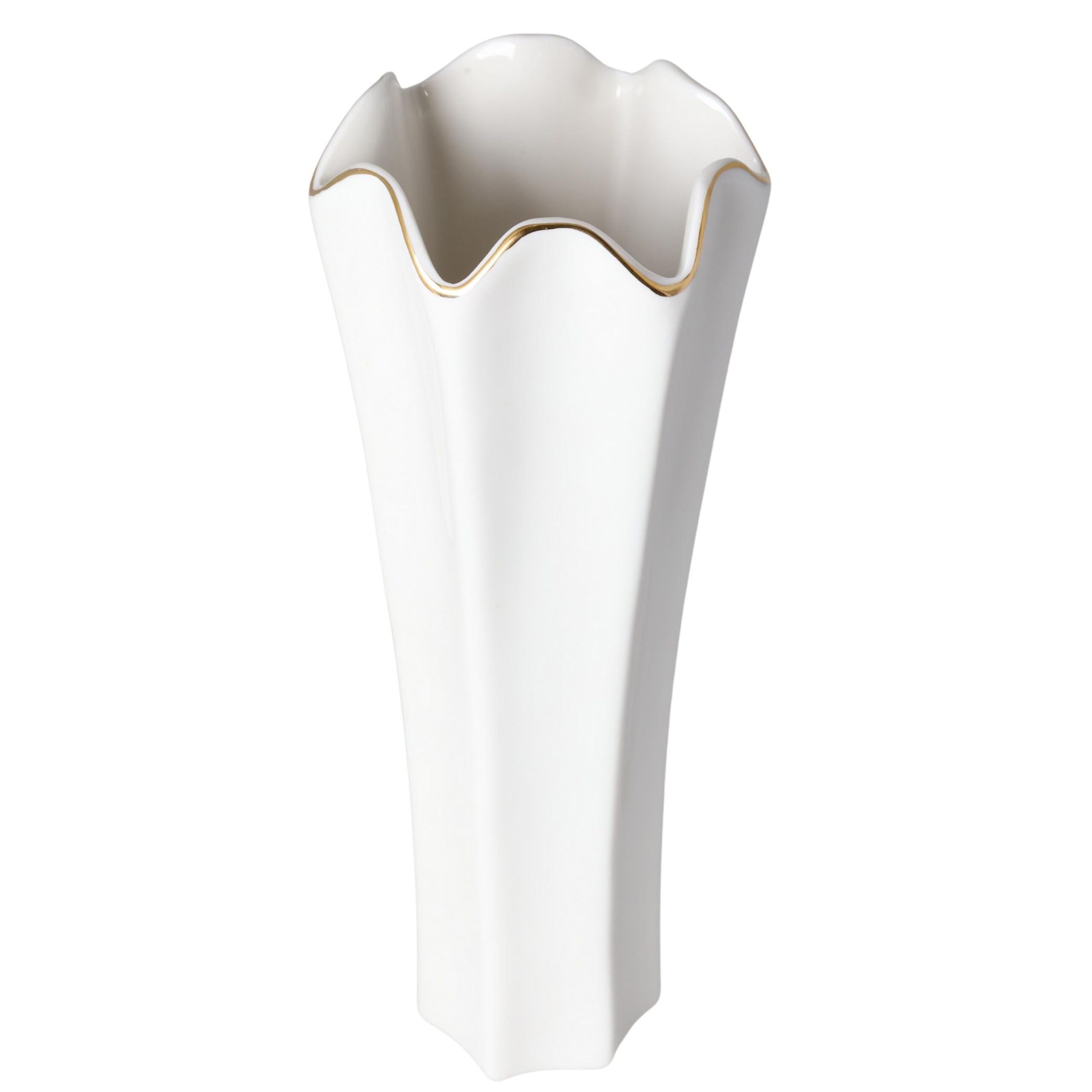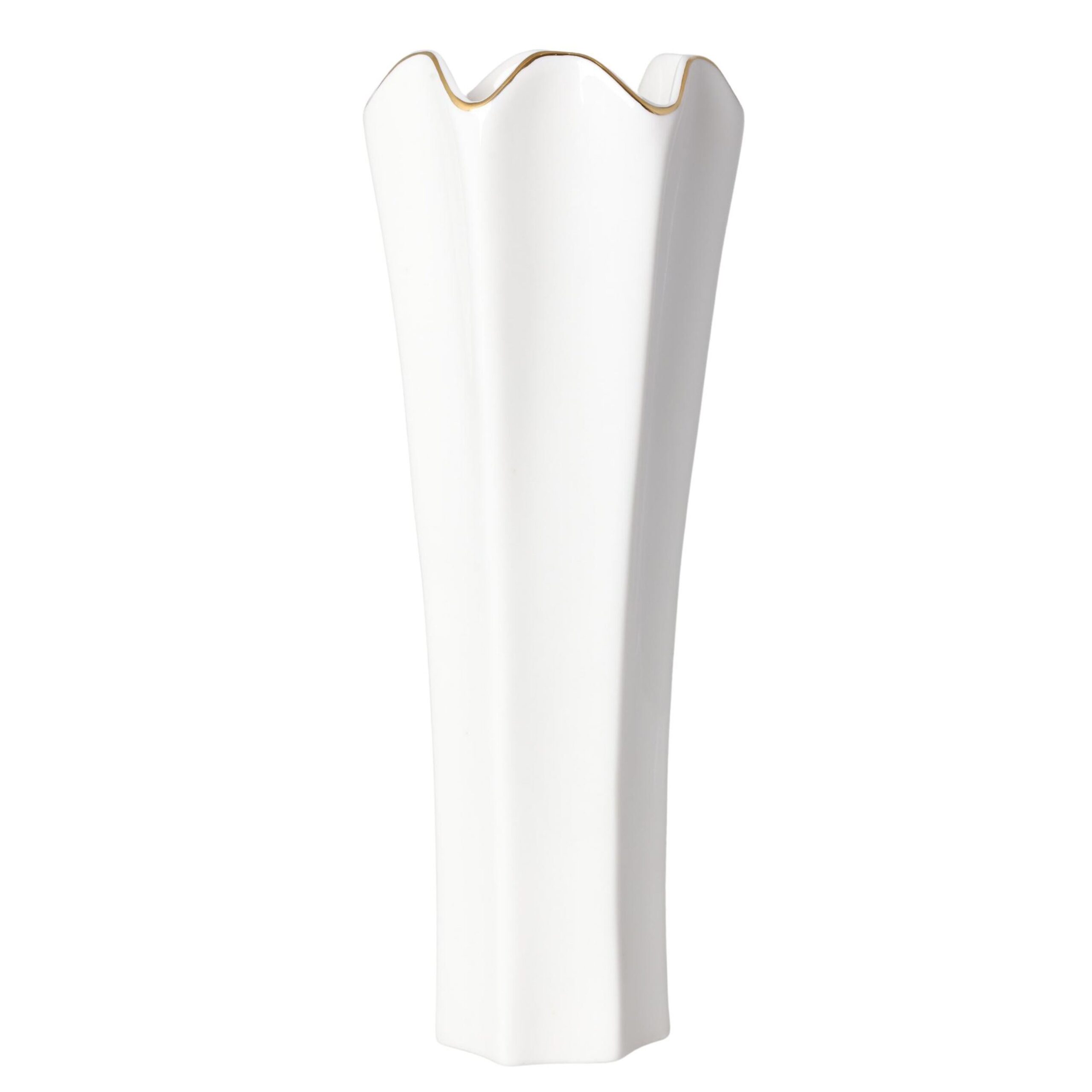 Nasz biały wazon ze złotym rantem to piękny element dekoracyjny, który doda elegancji i wyjątkowego blasku do Twojej przestrzeni. Wykonany z wysokiej jakości materiałów, wazon prezentuje się estetycznie i trwało.