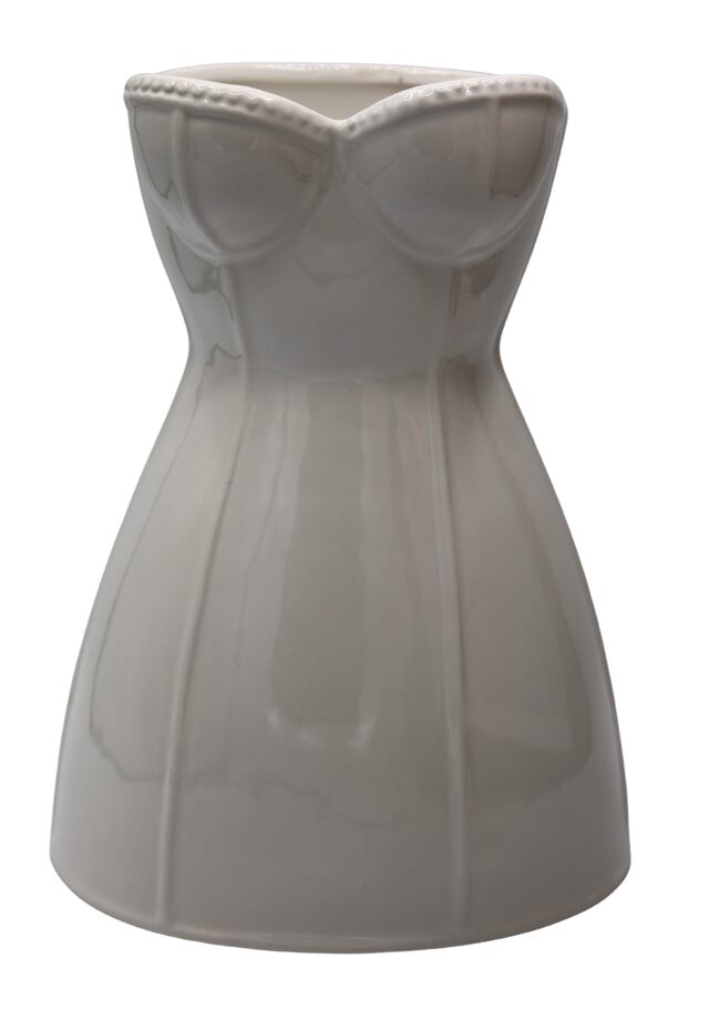 Wazon ceramiczny GUTU w kształcie sukienki, biały. Elegancki i stylowy dodatek do wnętrz, który przyciąga wzrok swoim unikalnym designem.