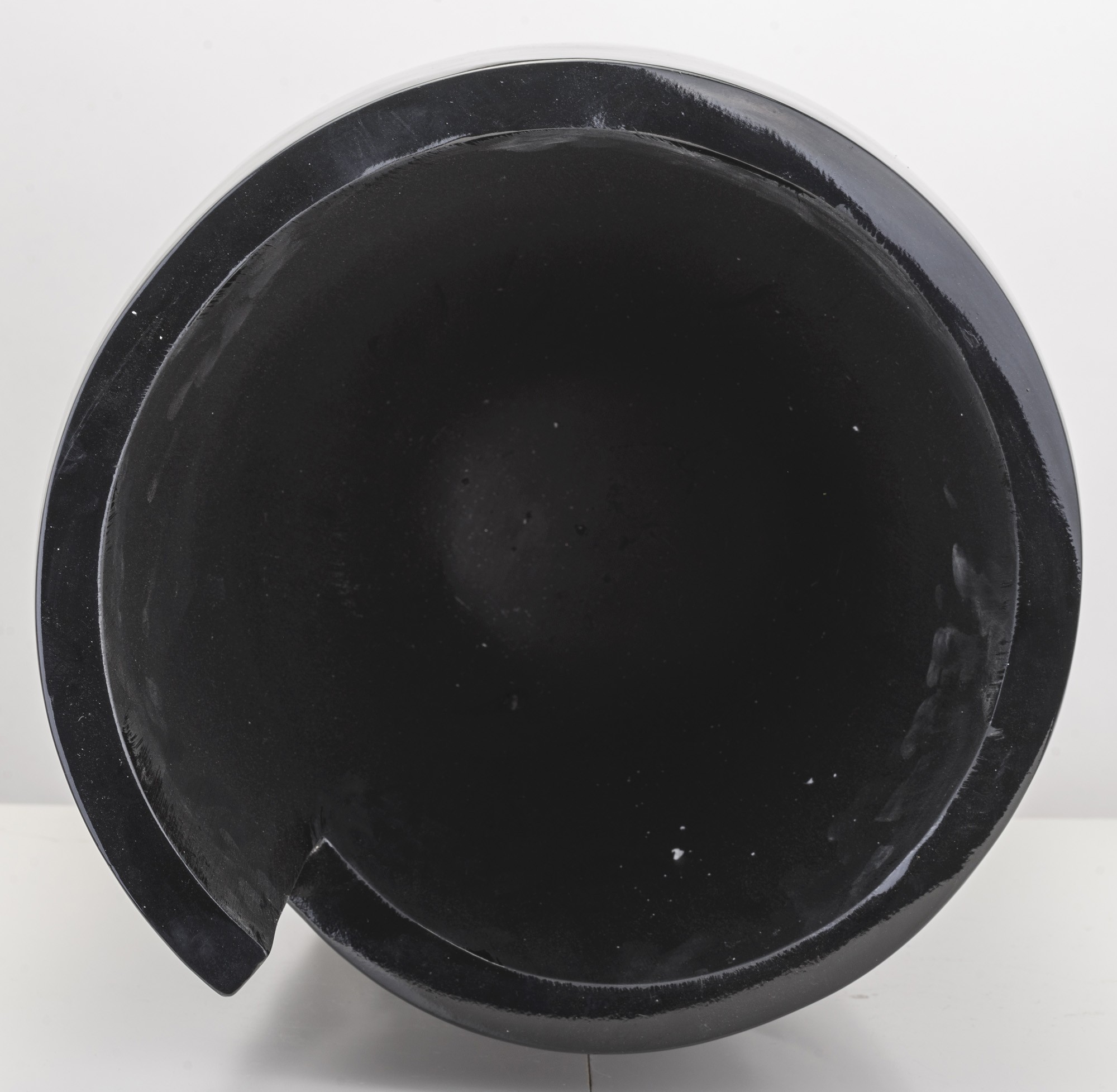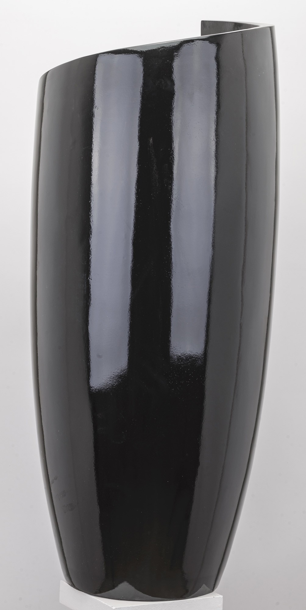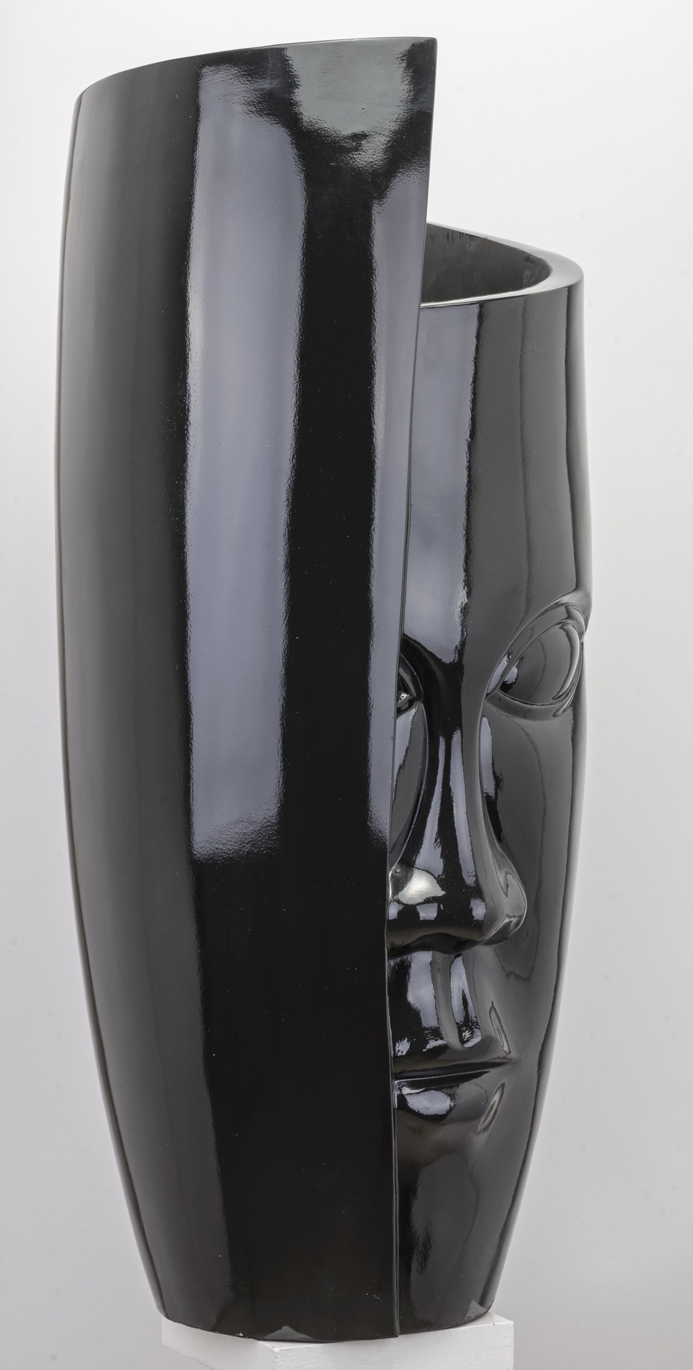 Czarny wazon o nieregularnym kształcie i gładkiej fakturze, kolejny z motywem twarzy wyrzeźbionej w wazonie. Doskonały do eksponowania kwiatów ciętych lub jako samodzielna ozdoba, na pewno doda elegancji każdemu wnętrzu. Wazon ma 90 cm wysokości i 36 cm średnicy.