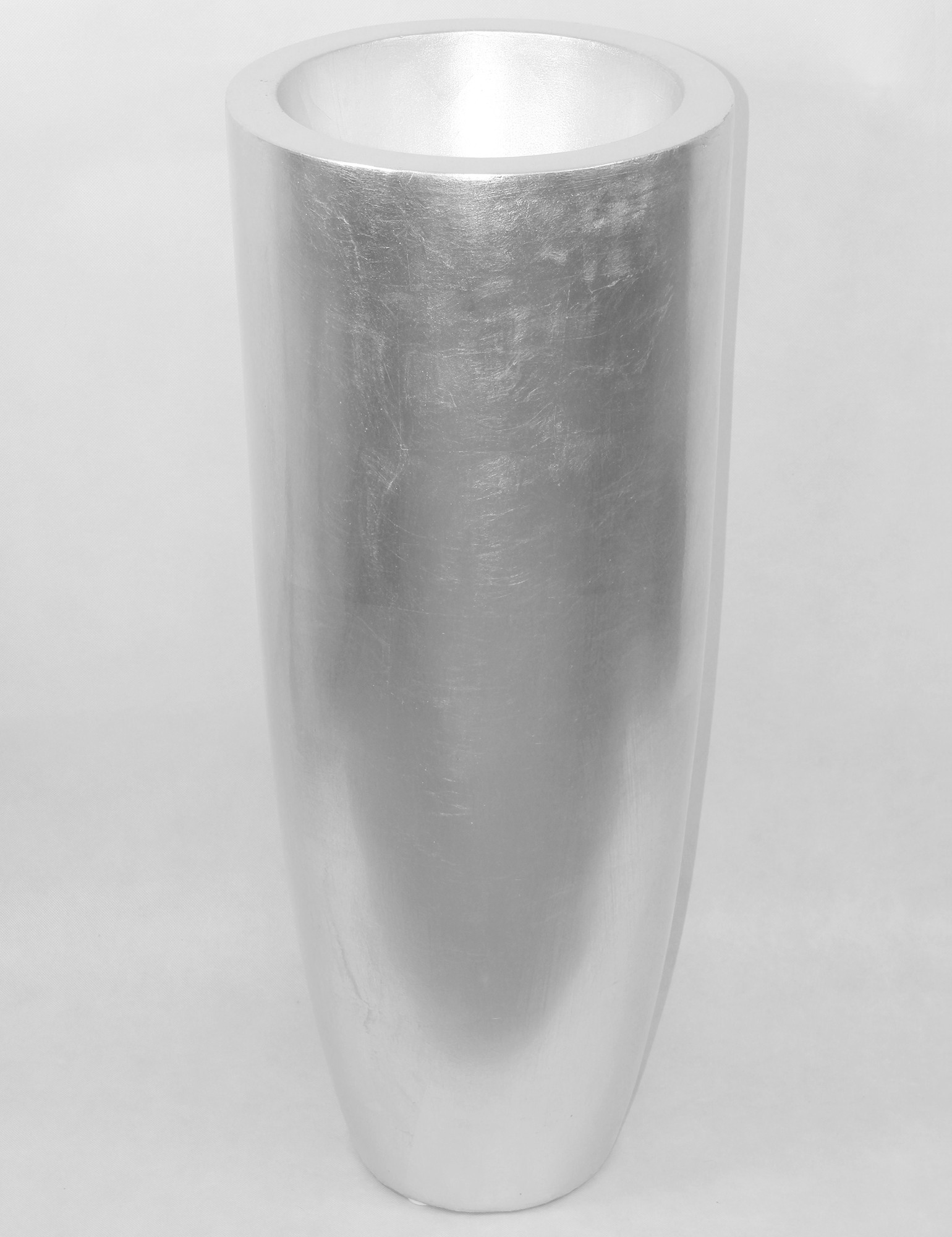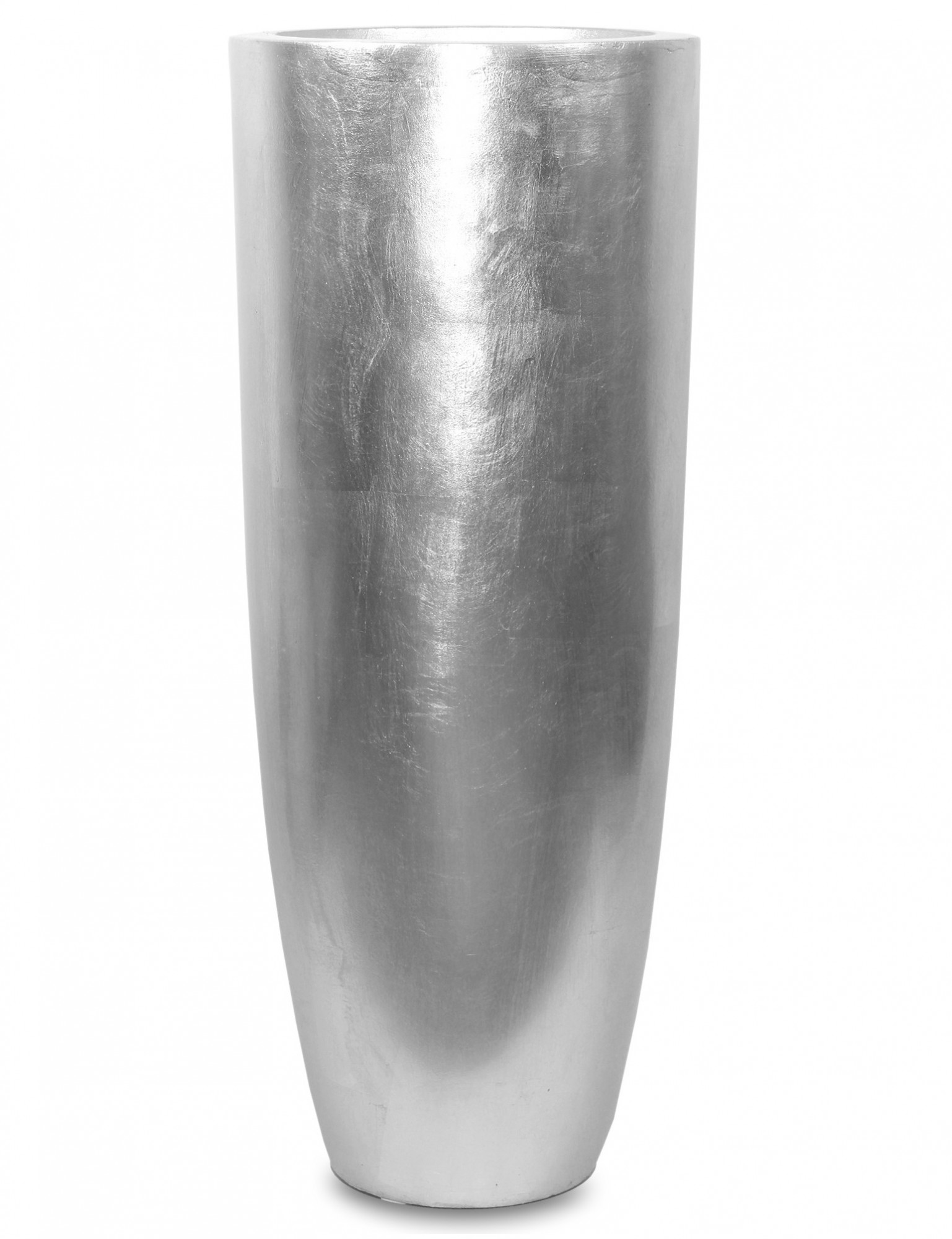 Elegancki srebrny wazon ceramiczny o wymiarach 92 cm wysokości i 37 cm średnicy. Jego gładka powierzchnia z efektem postarzenia dodaje wnętrzu wyjątkowego charakteru. Idealny jako stylowy i funkcjonalny element dekoracyjny.