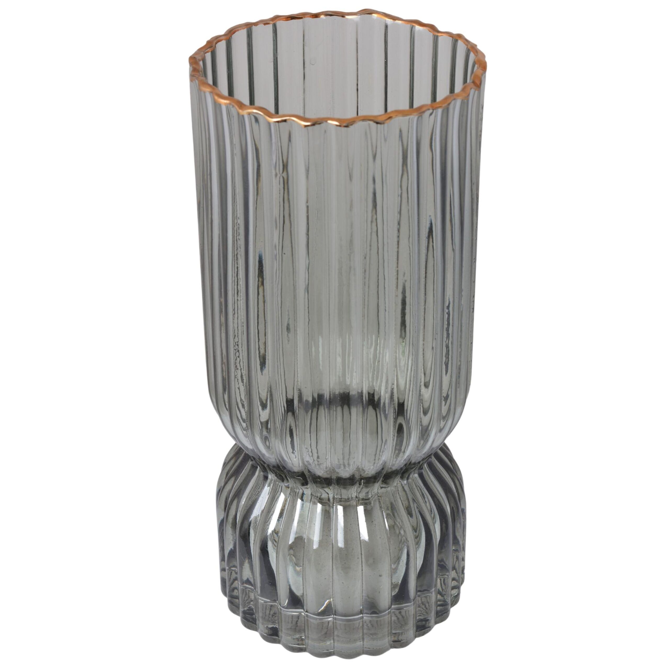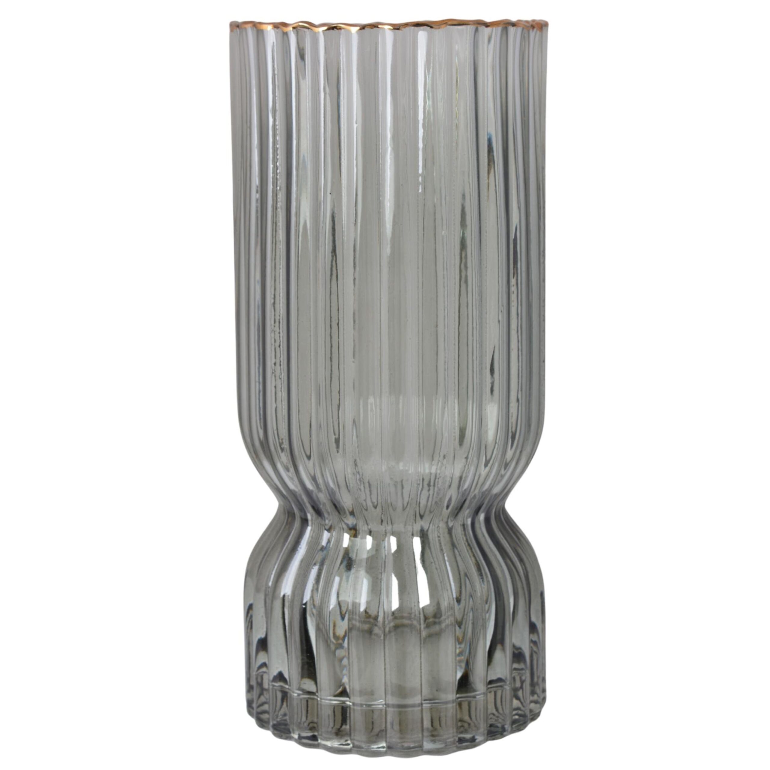 Wazon szklany szary ze złotym rantem to niezwykle efektowna dekoracja, która dodaje uroku i stylu do każdego wnętrza. Wykonany z przezroczystego szkła o subtelnie szarym odcieniu, wazon prezentuje się nowocześnie i elegancko.