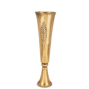 Ten unikalny wazon to idealne połączenie klasyki i artystycznej estetyki. Wykonany z metalu, posiada efektowną, patynowaną powierzchnię w odcieniach turkusu i złota, nadającą mu antyczny, ponadczasowy wygląd. Smukła sylwetka zwieńczona dekoracyjną podstawą sprawia, że doskonale komponuje się zarówno z nowoczesnymi, jak i klasycznymi wnętrzami. Może pełnić funkcję samodzielnej ozdoby lub efektownej oprawy dla kwiatowych kompozycji. Idealny do salonu, jadalni czy stylowego biura.