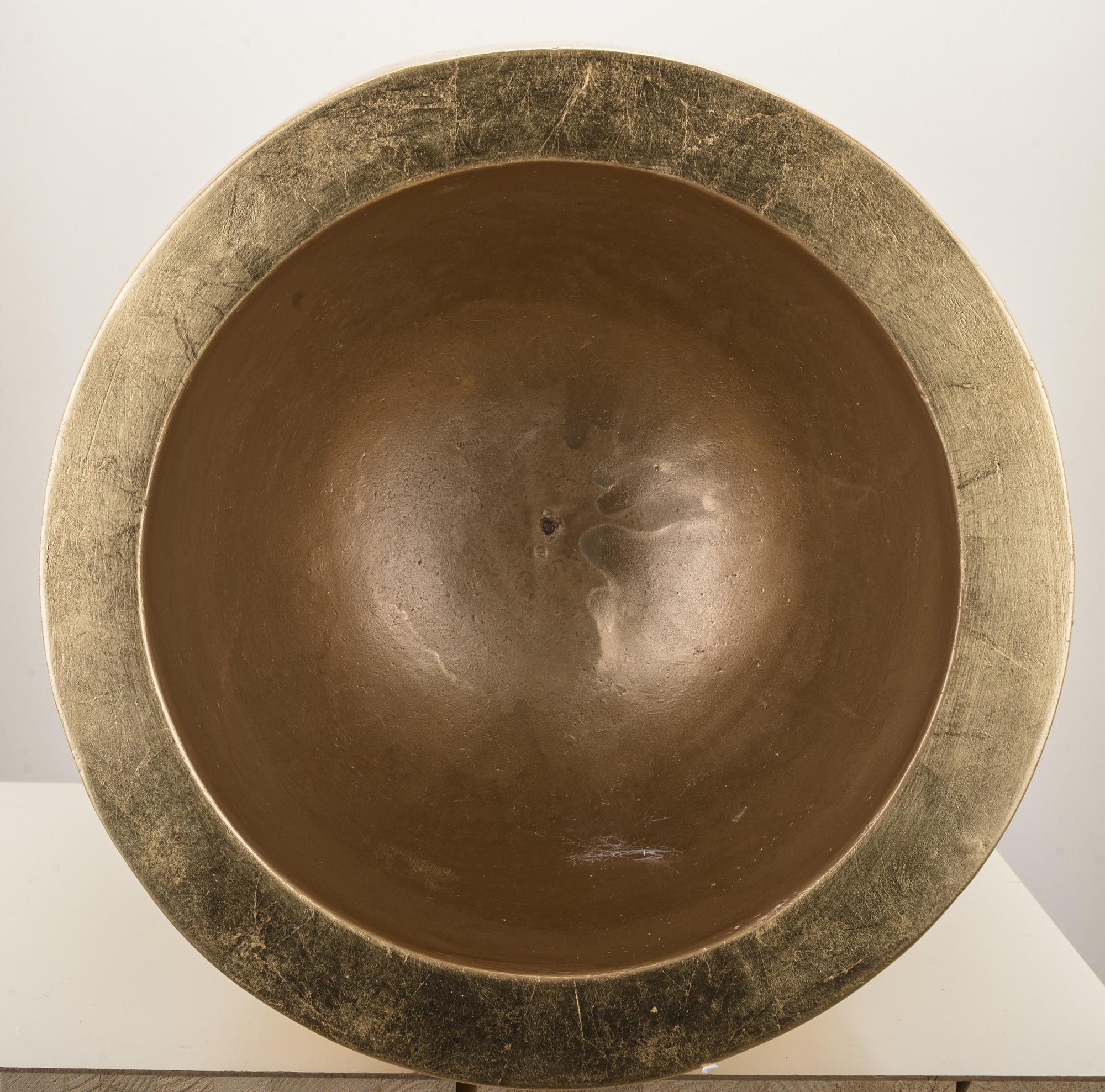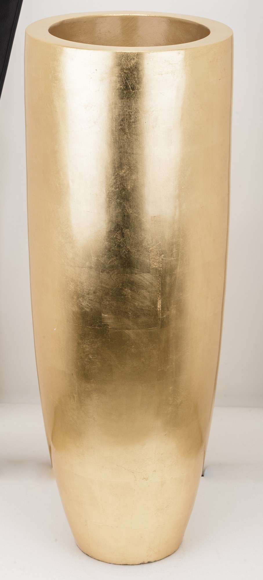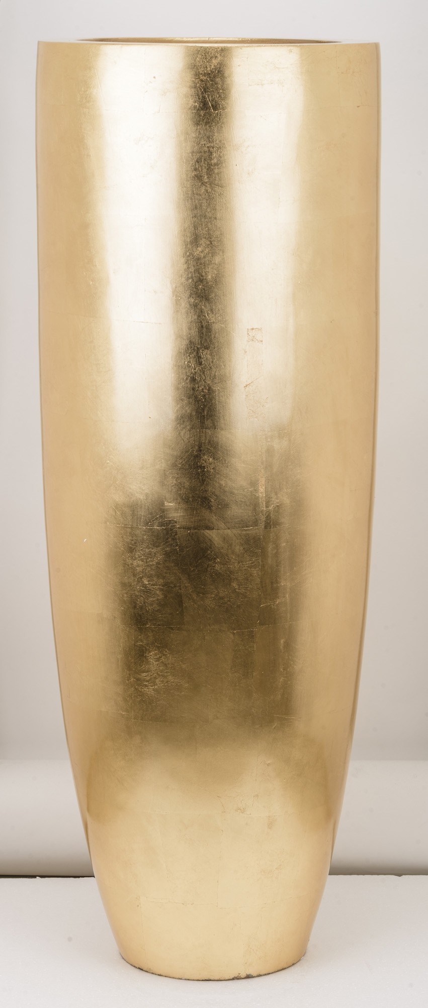 Elegancki złoty wazon ceramiczny o wymiarach 123 cm wysokości i 44 cm średnicy. Jego gładka powierzchnia z efektem postarzenia dodaje wnętrzu wyjątkowego charakteru. Idealny jako stylowy i funkcjonalny element dekoracyjny