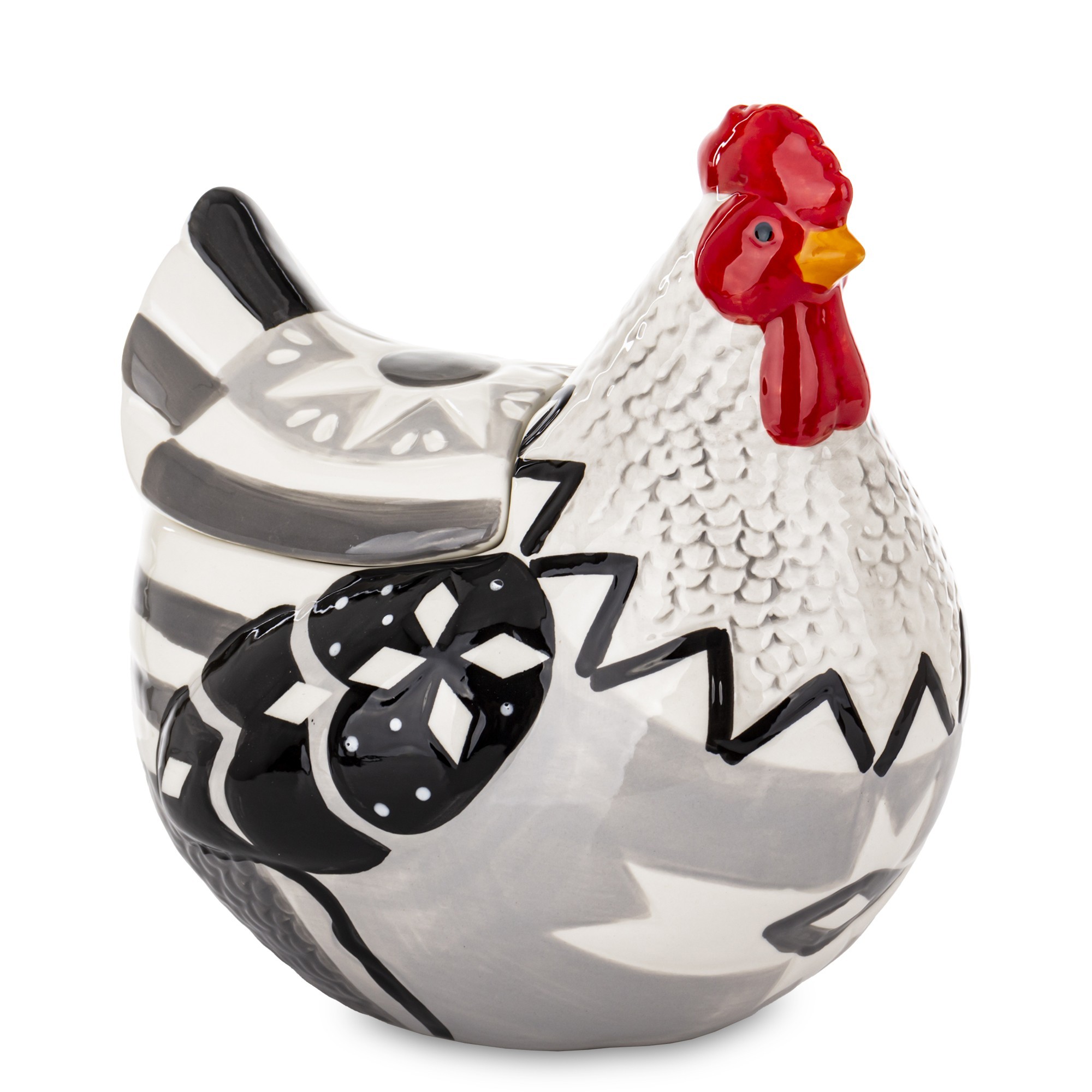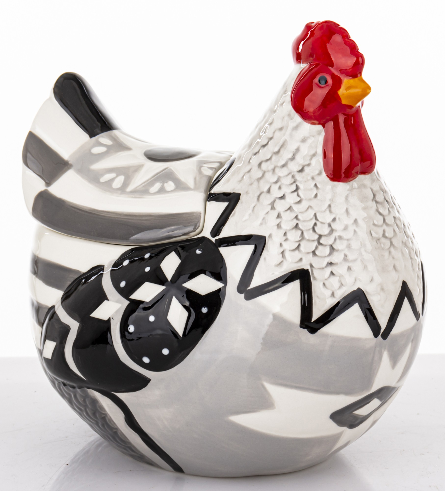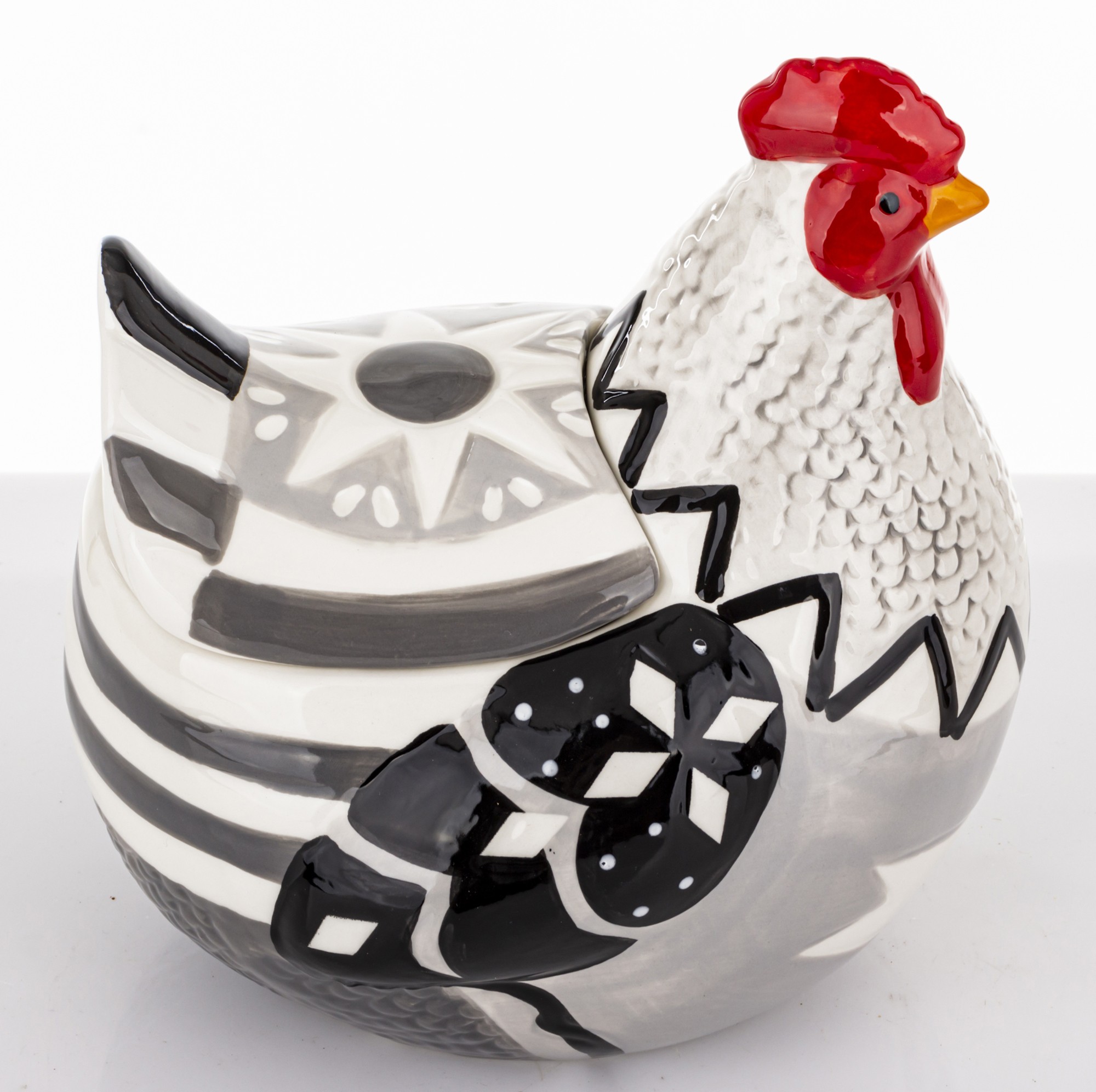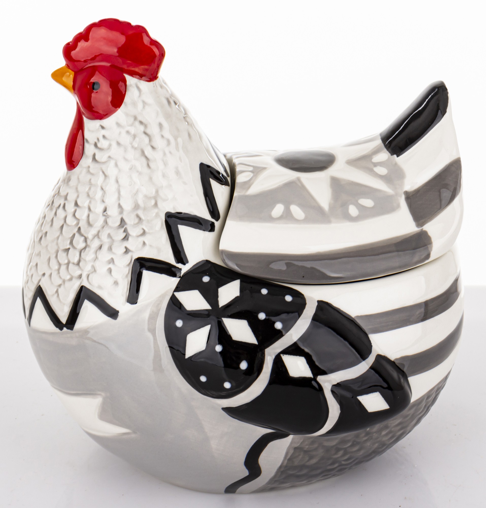 Wielokolorowa Ceramiczna Kura Z Przykrywką GALLOSA to wyjątkowy element ceramiki ozdobnej, który doskonale sprawdzi się zarówno jako oryginalna dekoracja, jak i praktyczny pojemnik. Wykonana z wysokiej jakości ceramiki, ta pięknie zdobiona kura z pewnością przyciągnie wzrok i wprowadzi do Twojego wnętrza niepowtarzalny klimat.
