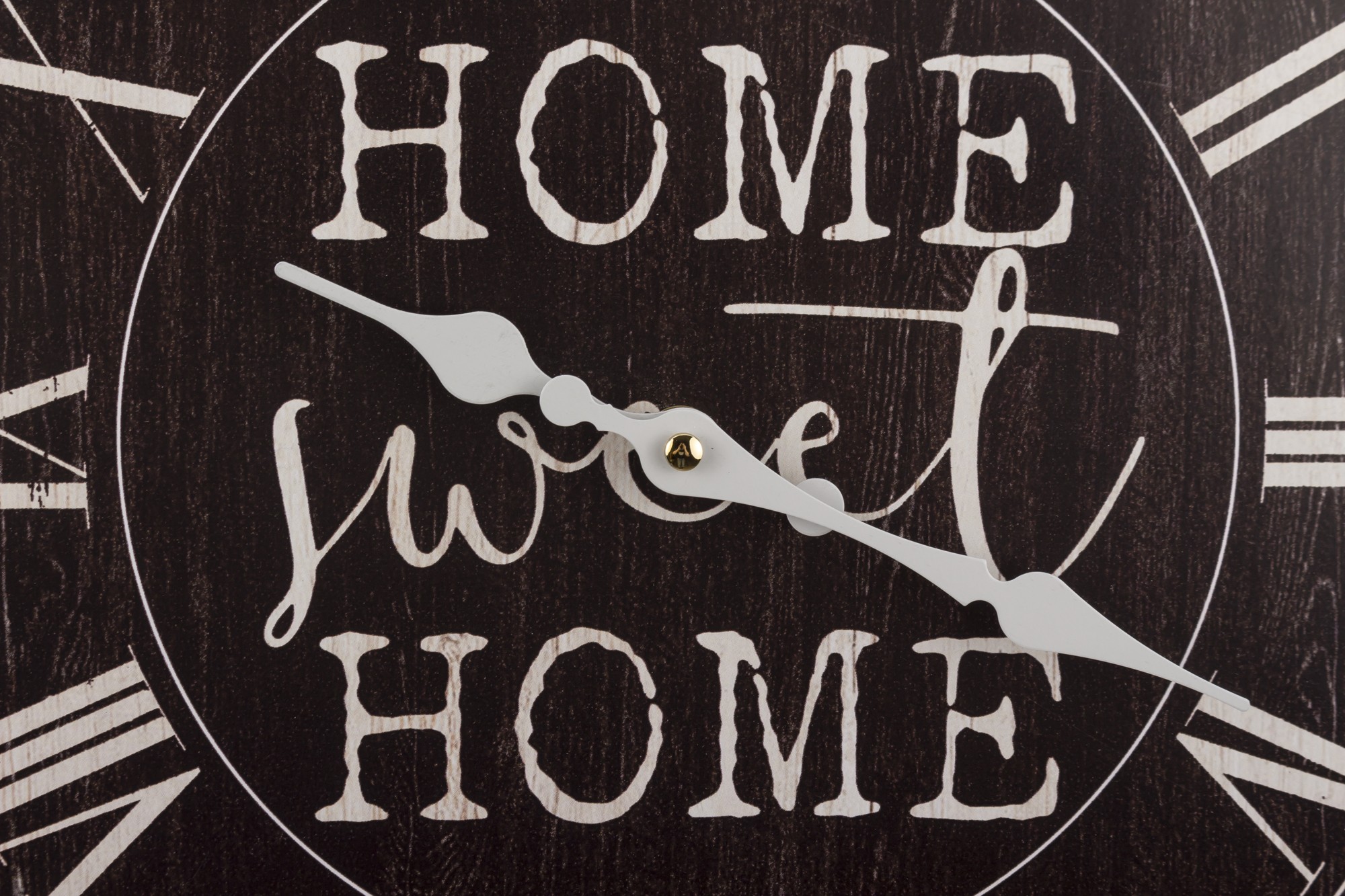 Odkryj niezwykły kwadratowy zegar z płyty MDF, który wprowadzi do Twojego wnętrza mroczny, elegancki klimat. Zegar ma czarną powierzchnię ozdobioną białymi ornamentami w narożnikach, które nadają mu unikalny i stylowy wygląd. Centralnym punktem zegara jest okrągła tarcza cyferblatu, na której znajdują się duże, wyraźne cyfry rzymskie, umożliwiające łatwe odczytywanie godziny oraz napis „Home sweet home”. Białe zdobienia i wskazówki pięknie kontrastują z ciemnym tłem, podkreślając precyzję wykonania i dodając elegancji. Zegar ten doskonale sprawdzi się zarówno w nowoczesnych, jak i gotyckich aranżacjach wnętrz, dodając im charakteru. Dzięki swojej oryginalnej stylistyce zegar ten stanie się nie tylko praktycznym narzędziem do odmierzania czasu, ale również centralnym punktem dekoracyjnym w każdym pomieszczeniu. Dodaj swojemu wnętrzu nutę tajemniczości i elegancji dzięki temu wyjątkowemu zegarowi.