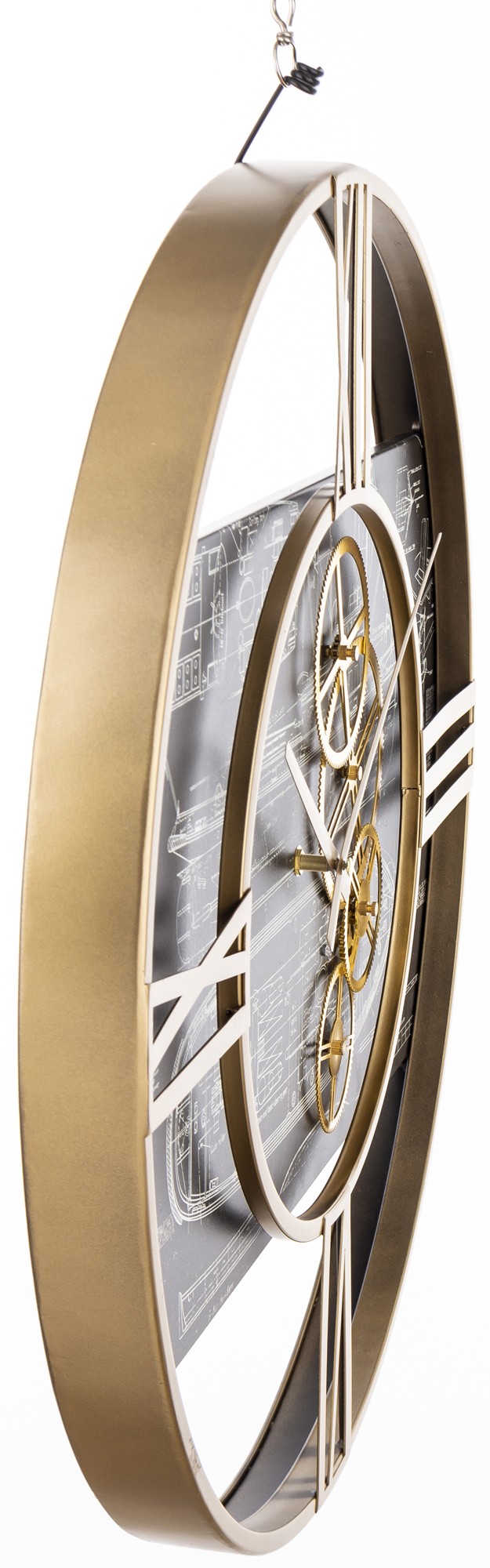 Zegar Nave statek to wyjątkowy element dekoracyjny, który doda niepowtarzalnego charakteru każdemu pomieszczeniu. Jego średnica wynosząca 60 cm sprawia, że staje się on centralnym punktem przestrzeni. Wykonany z metalu, z tarczą w kolorze czarnym i złotym, ten zegar jest zarówno praktycznym narzędziem do mierzenia czasu, jak i fascynującą ozdobą. Tarcza zegara przykuwa uwagę projektem w kształcie statku, co nadaje mu wyjątkowego charakteru. Widoczny mechanizm zegara stanowi efektowny element designu, który prezentuje się imponująco. Czarne wskazówki kontrastują z tłem, ułatwiając odczyt godziny.