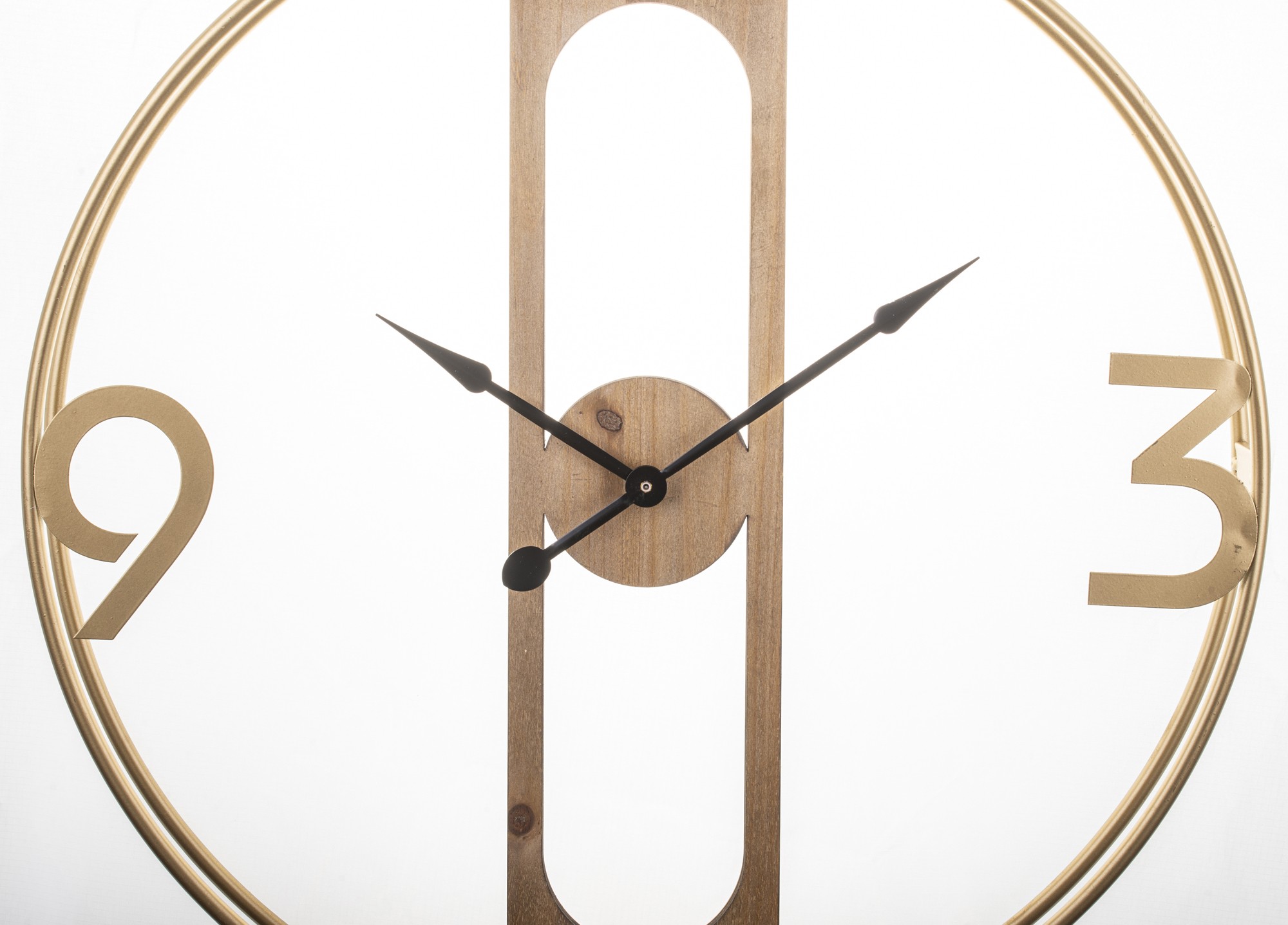 Zegar Parete wiszący to elegancki dodatek do Twojego wnętrza, który łączy w sobie minimalizm i klasykę. Wykonany z metalu z tarczą w kolorze złotym i dwiema arabskimi cyframi „3” i „9”, ten zegar emanuje elegancją. Czarne wskazówki dodają mu nuty nowoczesności, a jednocześnie zachowuje on swoją klasyczną estetykę. Jego średnica wynosząca 50 cm czyni go doskonałym elementem dekoracyjnym na ścianie. Zegar jest zasilany jedną baterią AA.