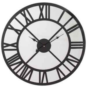 Przedstawiamy zegar z szeroką, czarną ramką, ozdobioną delikatnymi, jasnymi kwiatami, który tworzy niezwykle interesujący efekt wizualny. Jego kompaktowy cyferblat jest w kolorze jasnego beżu i posiada nadrukowane duże, wyraźne cyfry arabskie, co sprawia, że godzina jest zawsze czytelna, nawet z większej odległości. Czarne tło ramki kontrastuje z jasnymi elementami, dodając wnętrzu elegancji i stylu. Ten zegar, nawiązujący do estetyki vintage, będzie wspaniałym uzupełnieniem zarówno nowoczesnych, jak i klasycznych aranżacji. Idealny do salonu, kuchni, czy jadalni, przyciągnie uwagę każdego gościa. To nie tylko praktyczny element wyposażenia, ale również stylowa dekoracja, która odmieni każde pomieszczenie. Zegar zasilany baterią AA.