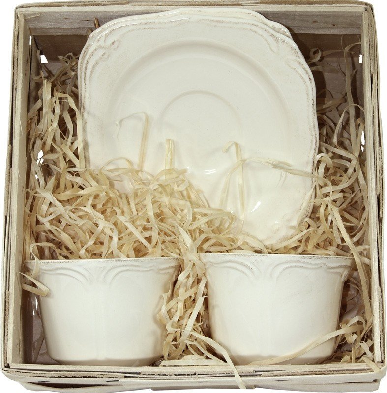 Ten uroczy zestaw 2/4 Roman składa się z dwóch filiżanek i dwóch podstawek, które doskonale nadadzą się do podawania herbaty lub kawy na romantyczne spotkania we dwoje. Wykonany z ceramiki, a konkretnie przez znanego producenta Ceramika Chodzież, ten zestaw w kolorze kremowym będzie doskonałym dodatkiem do Twojej kuchni.