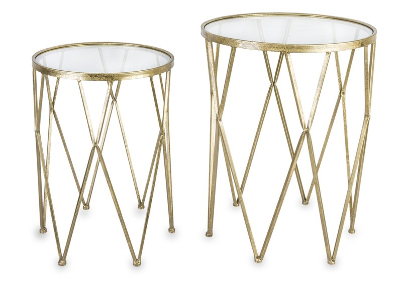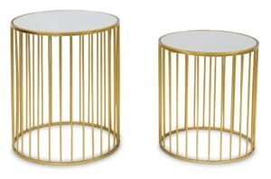 Jeśli szukasz czegoś wyjątkowego, co nada Twojemu wnętrzu szyku i klasy, zestaw stolików kawowych Ollo na pewno spełni Twoje wymagania. Zestaw składa się z dwóch stolików o różnej wielkości, dzięki czemu można je łatwo dopasować do wielkości pomieszczenia. Każdy stolik ma okrągły kształt i jest wykonany z metalu w kolorze złotym, co nadaje mu eleganckiego wyglądu.