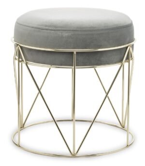 Nogi puf wykonane są z metalu w kolorze złotym, co dodaje zestawowi elegancji i nowoczesnego stylu. Wysoki połysk złotych nóg dodaje efektu przestrzeni i odbija światło, co sprawia, że zestaw prezentuje się bardzo stylowo.