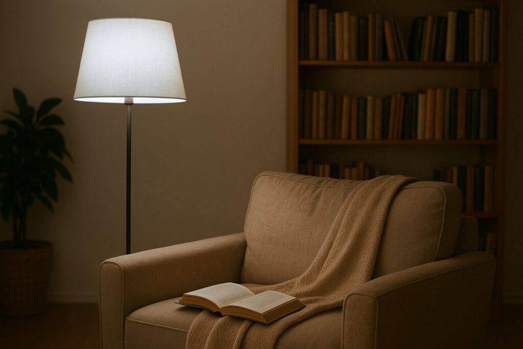Jesienne wieczory sprzyjają czytaniu książek czy oglądaniu filmów z kubkiem herbaty w dłoni. Lampa podłogowa ustawiona przy fotelu lub kanapie pozwoli stworzyć przytulny kącik. Modele z regulowanym ramieniem są praktyczne, a te z materiałowym abażurem – wyjątkowo nastrojowe. Warto zwrócić uwagę na to, by światło było rozproszone i niezbyt intensywne, dzięki czemu nie męczy oczu.